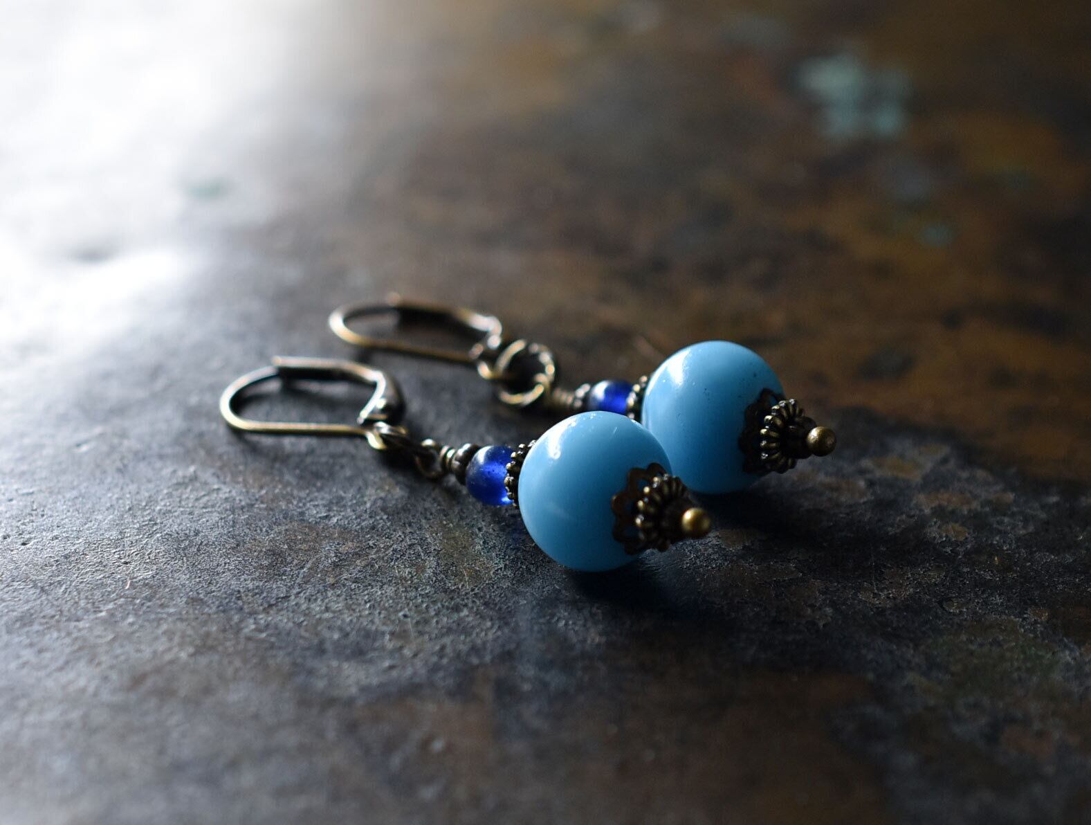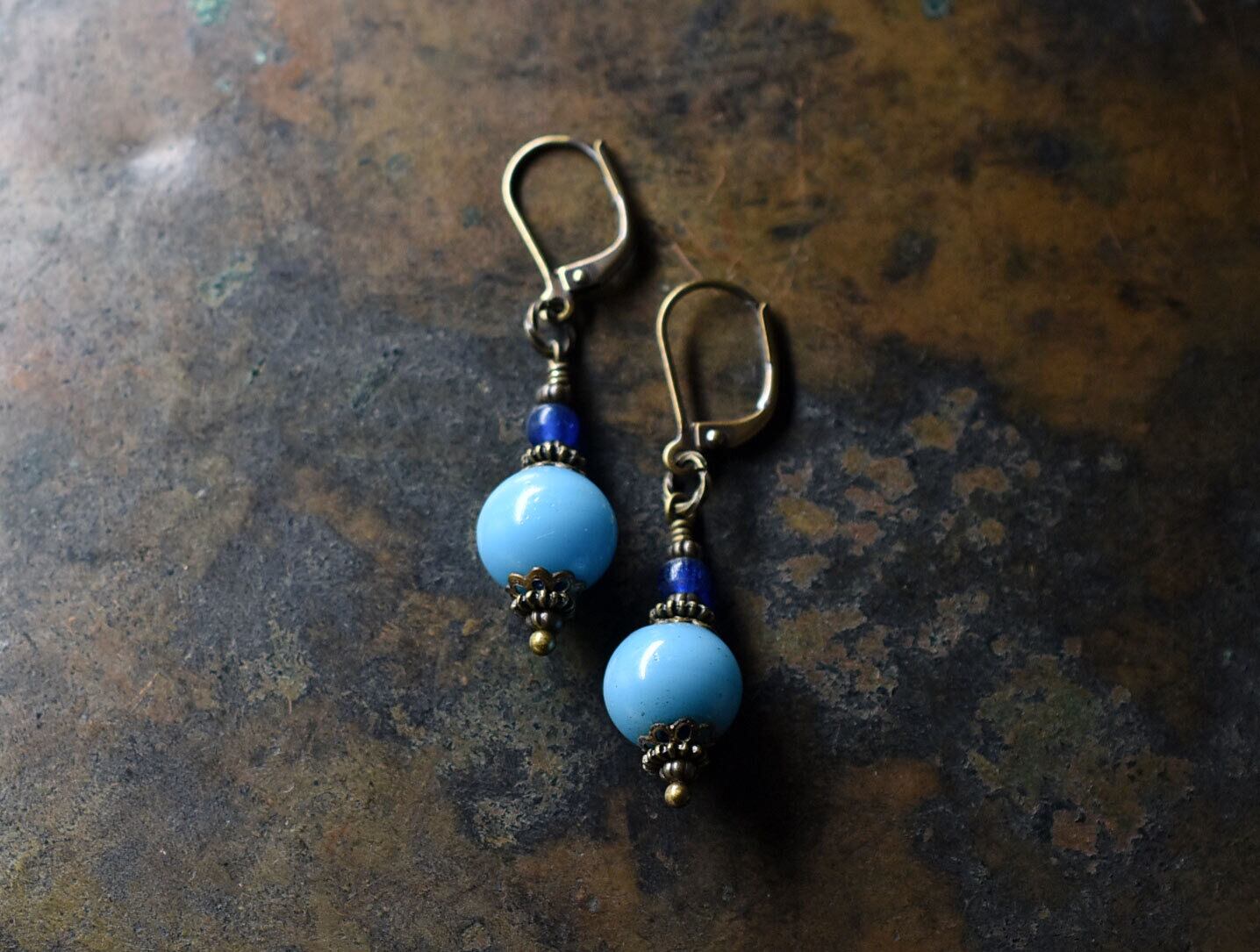まったり空色ヴィンテージビーズとブルーアンティークビーズのピアス
