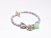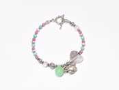 ウランガラスウエディングビーズとボタニカルカレンシルバー、ヴェネチアアンティークビーズ、ターコイズを繋いだブレスです。