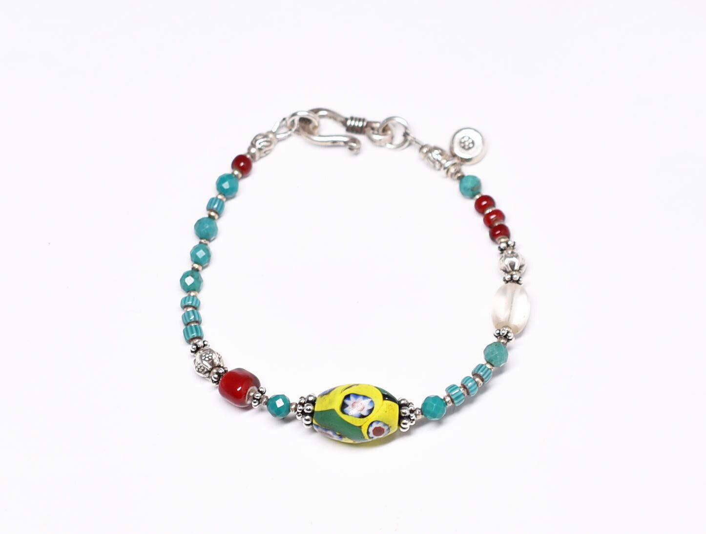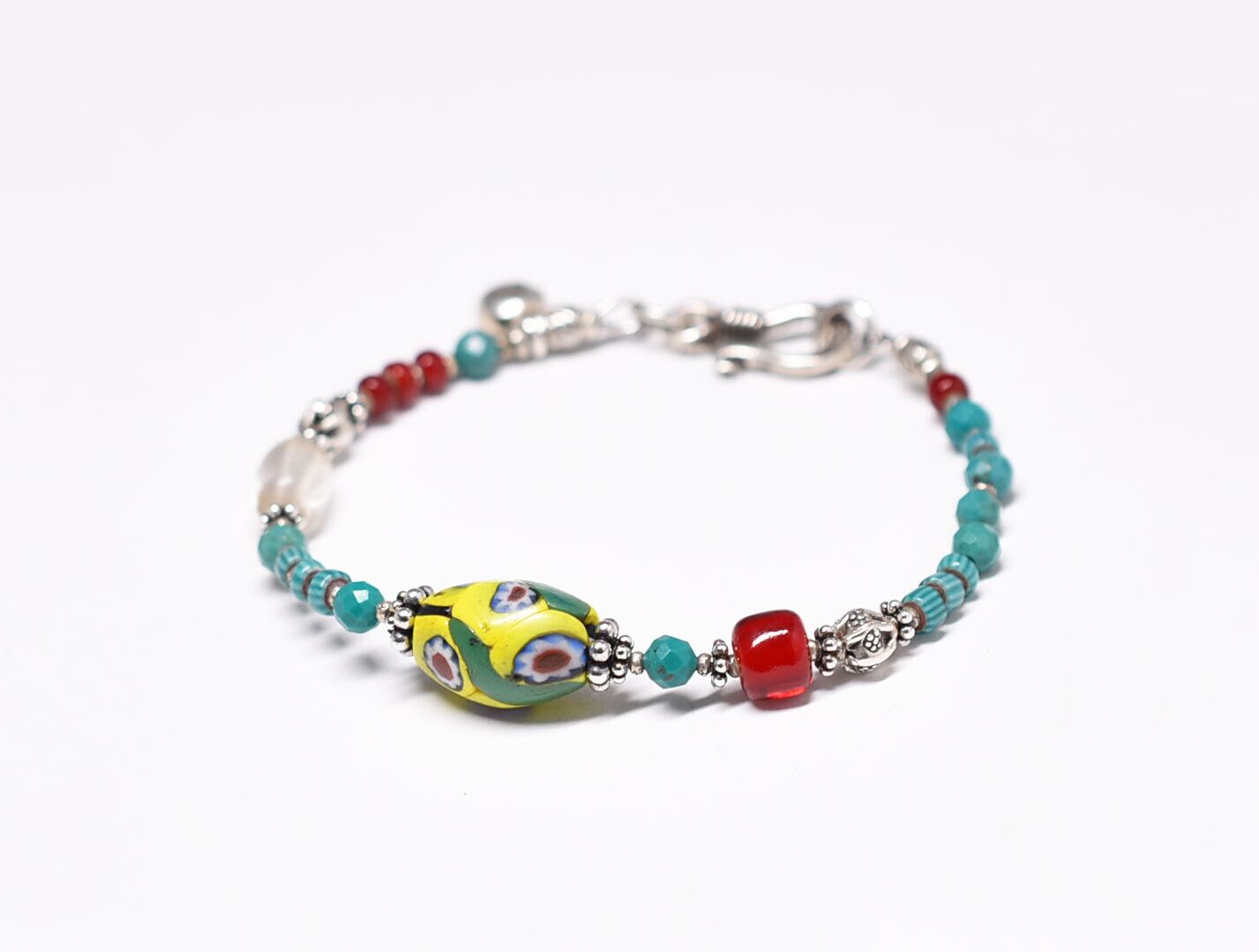 色鮮やかなアンティークヴェネチアビーズやボヘミアビーズを楽しめる、元気の出るブレスです。