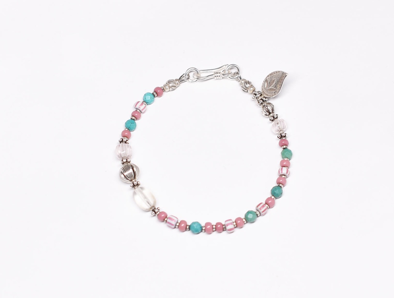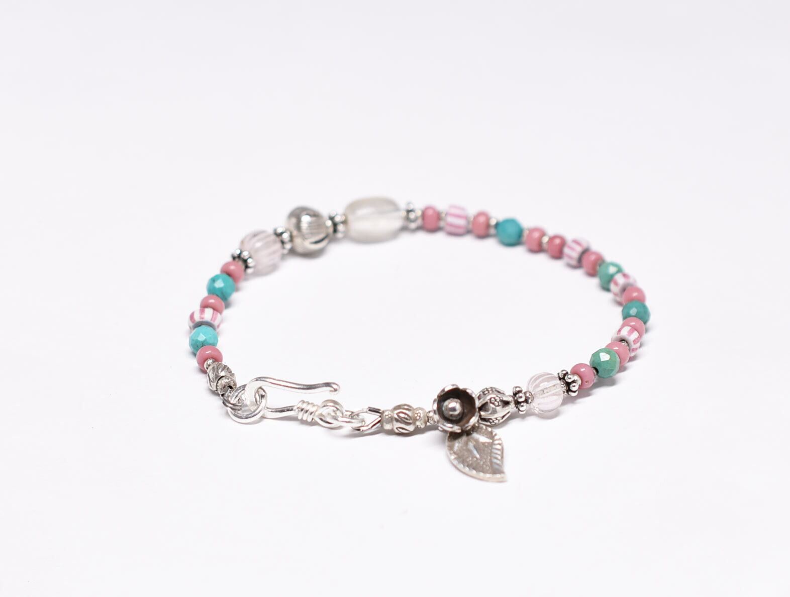 ビーズの間には花の刻印が施された小さなカレンシルバービーズを入れました。