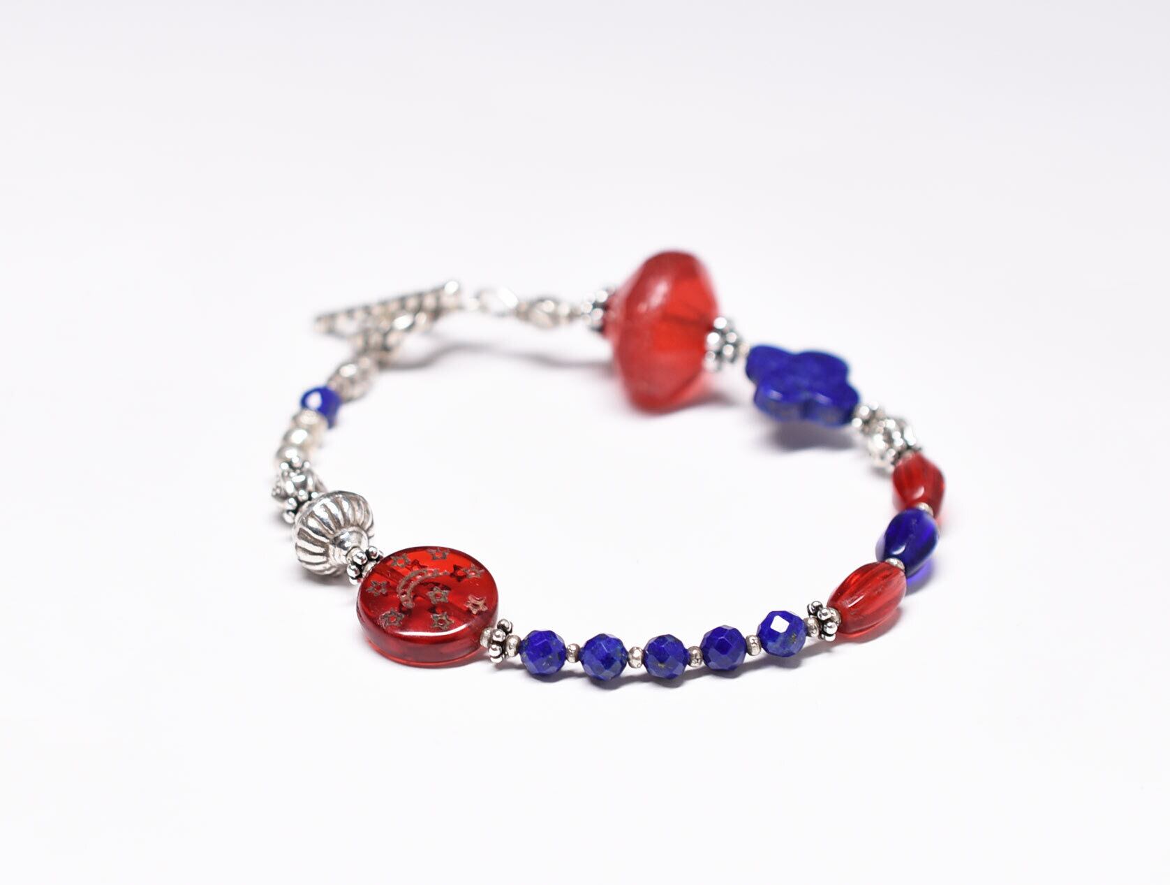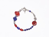 赤、ブルー、シルバーのコントラストが目を惹くボリュームのあるブレスです。