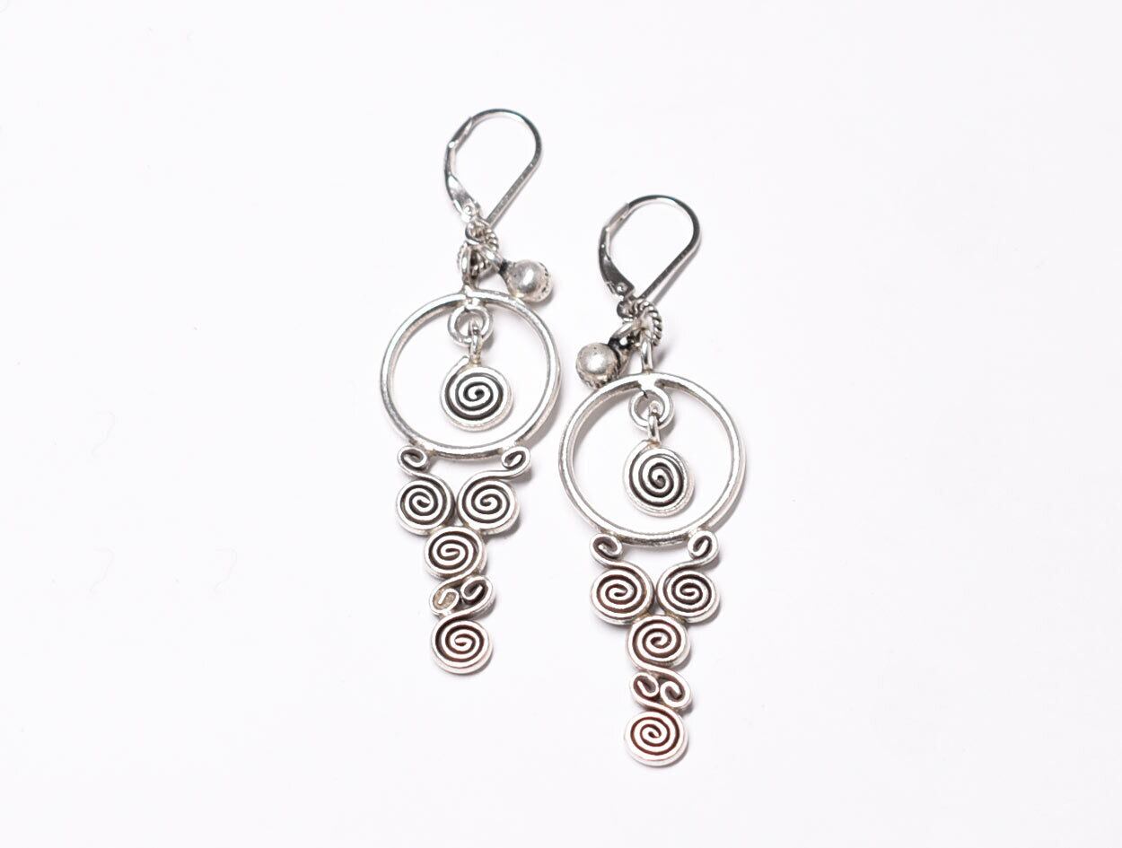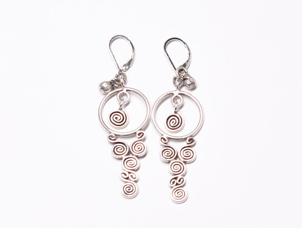 渦巻きを連ねた大き目なカレンシルバーを用いました。大きな円の中の小さな渦巻きチャームがゆらゆら揺れて可愛らしい!