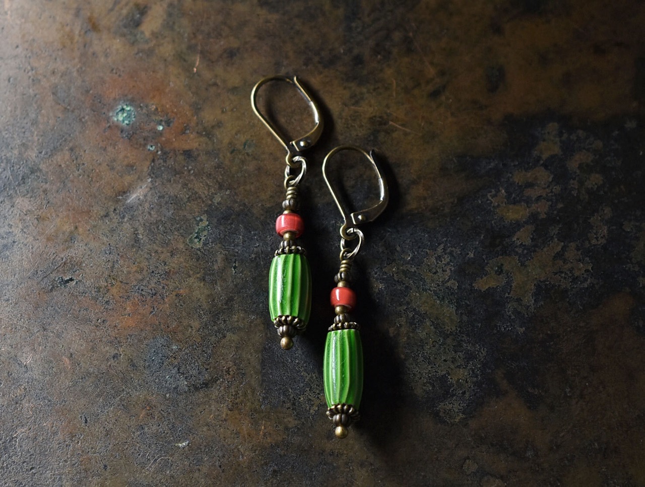 緑色のビーズは「ウォーターメロン」ト呼ばれるベネチアのアンティークビーズです。(20世紀初頭)
