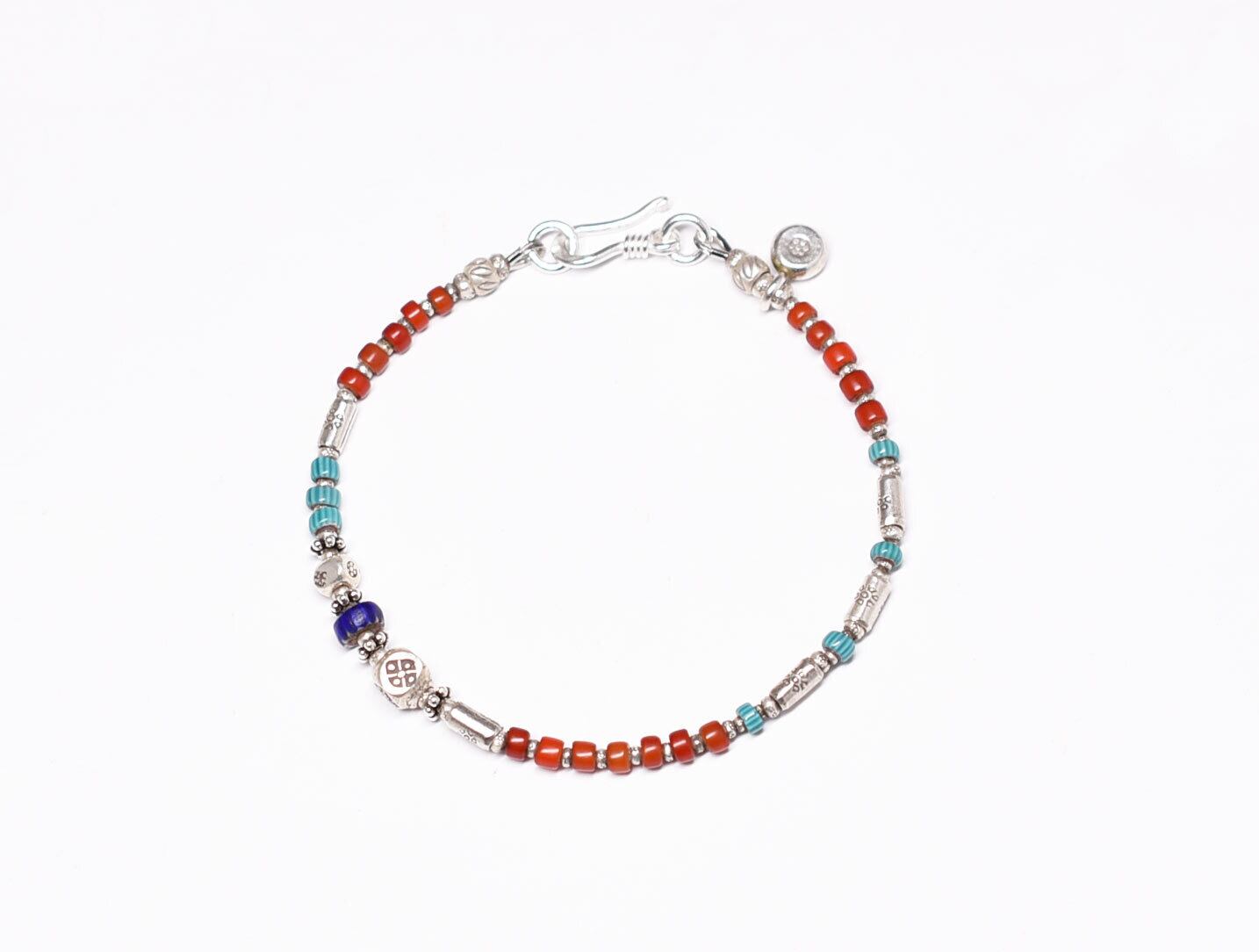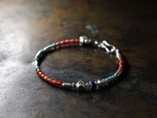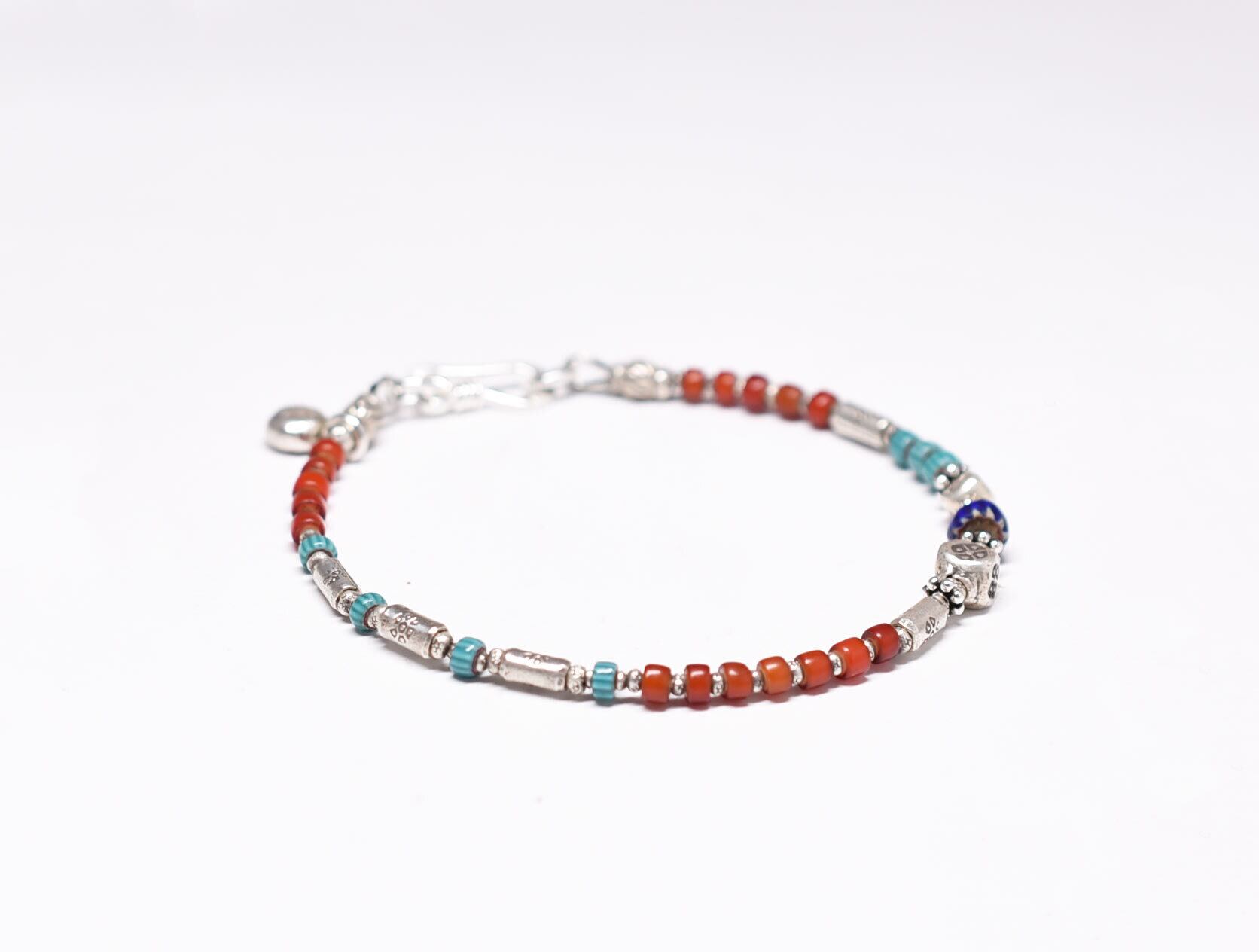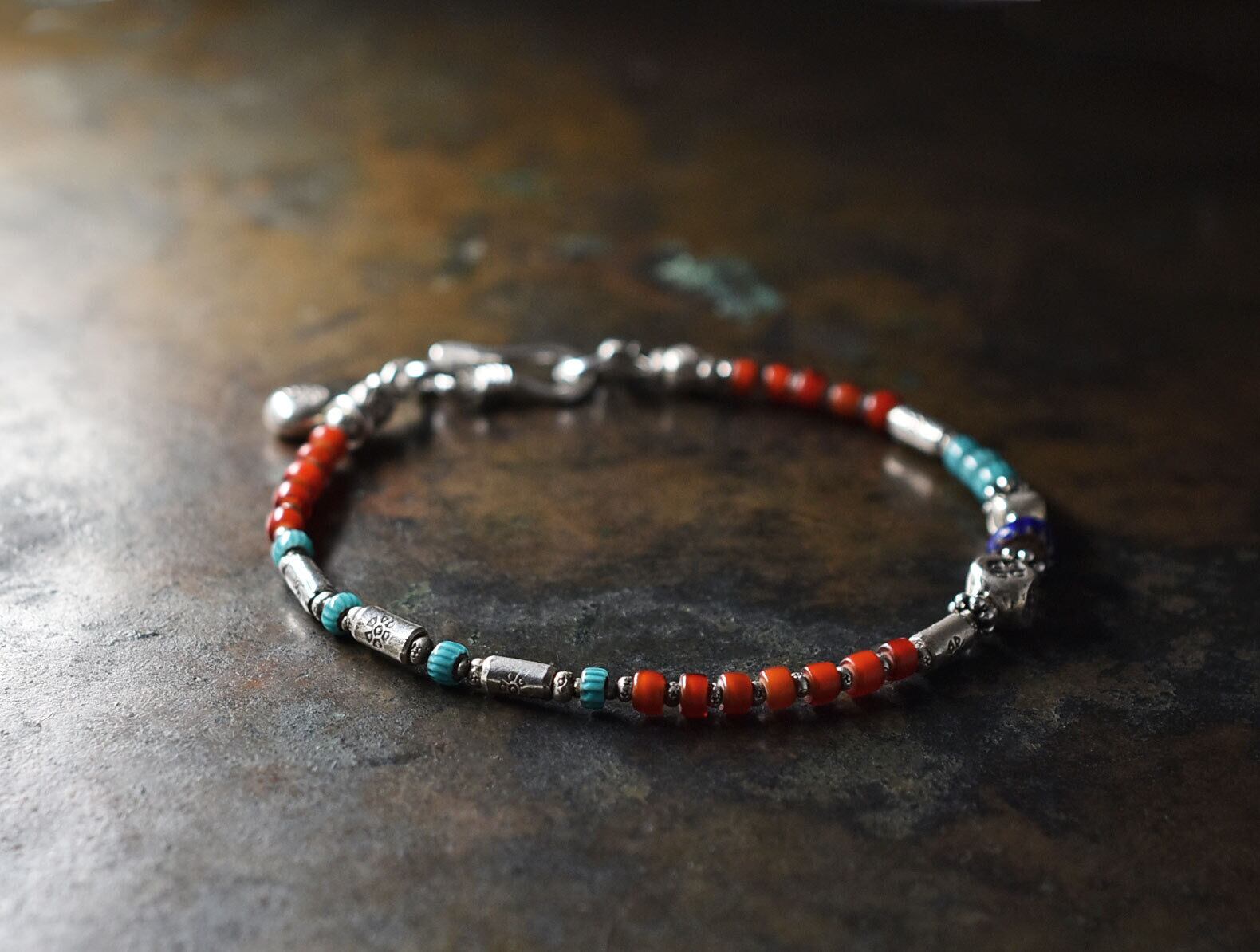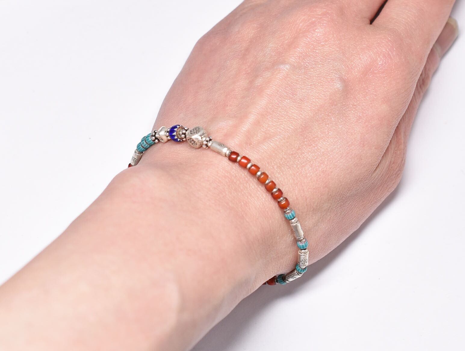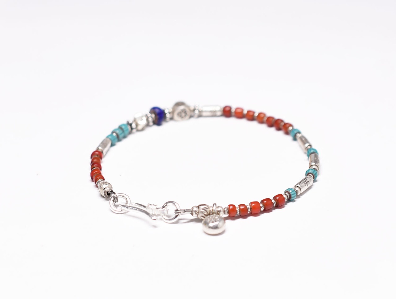 カレンシルバーとブルー&ターコイズブルーシェブロン、飴色ホワイトハーツの華奢なブレス