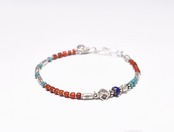 カレンシルバーとブルー&ターコイズブルーシェブロン、飴色ホワイトハーツを繋いだ華奢なブレスです。