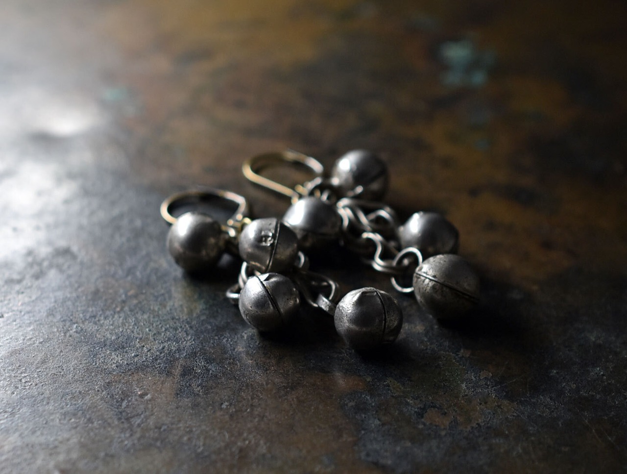 大小の鈴のようなパーツは、アフガニスタンから届いたものです。詳細は不明ですが数十年は経過しているものです。