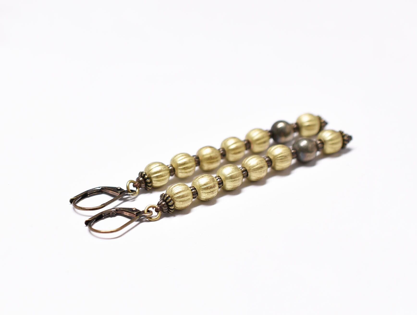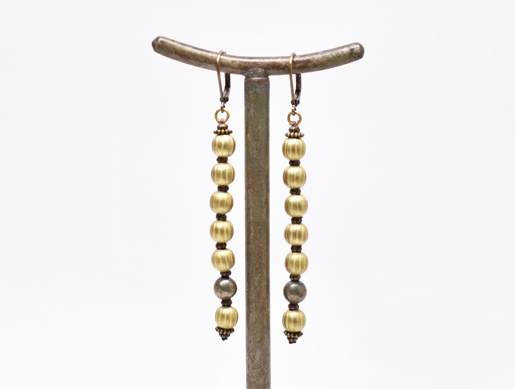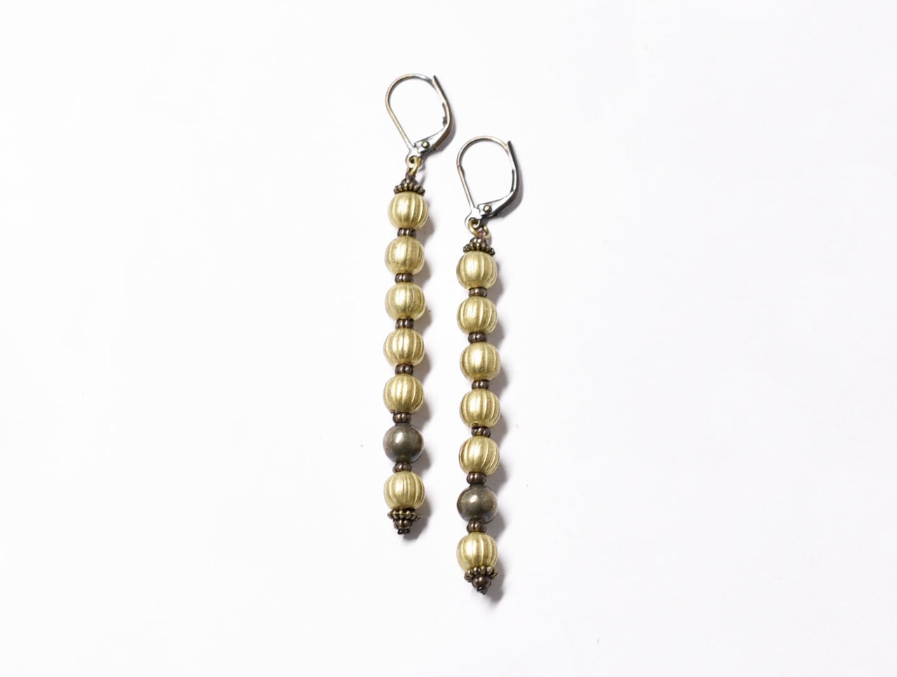 蜜柑ブラスとヘマタイトを繋いだピアスです。