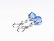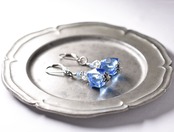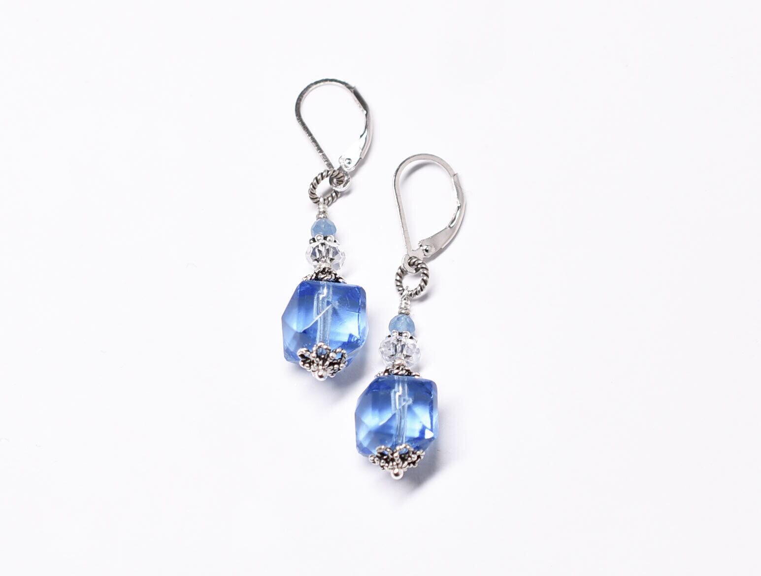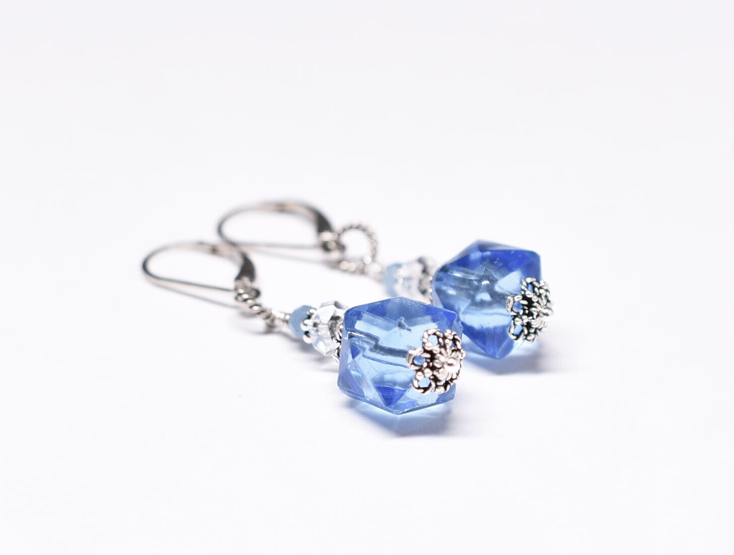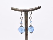 空色チェコヴィンテージビーズとクォーツ、アクアマリンを繋いだピアスです。