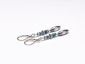 ナバホパールとエメラルドグリーンブルービーズ、ハンドメイドシルバーを繋いだスリムなピアスです。