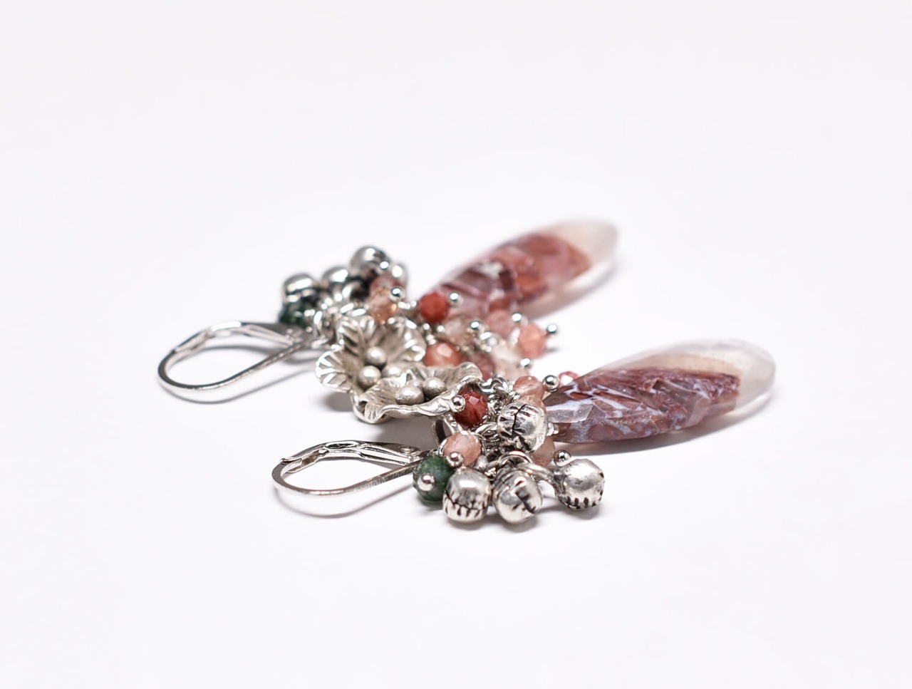 雫型のカットが施されたメインのストーンビーズはアゲートが含まれたクォーツです。