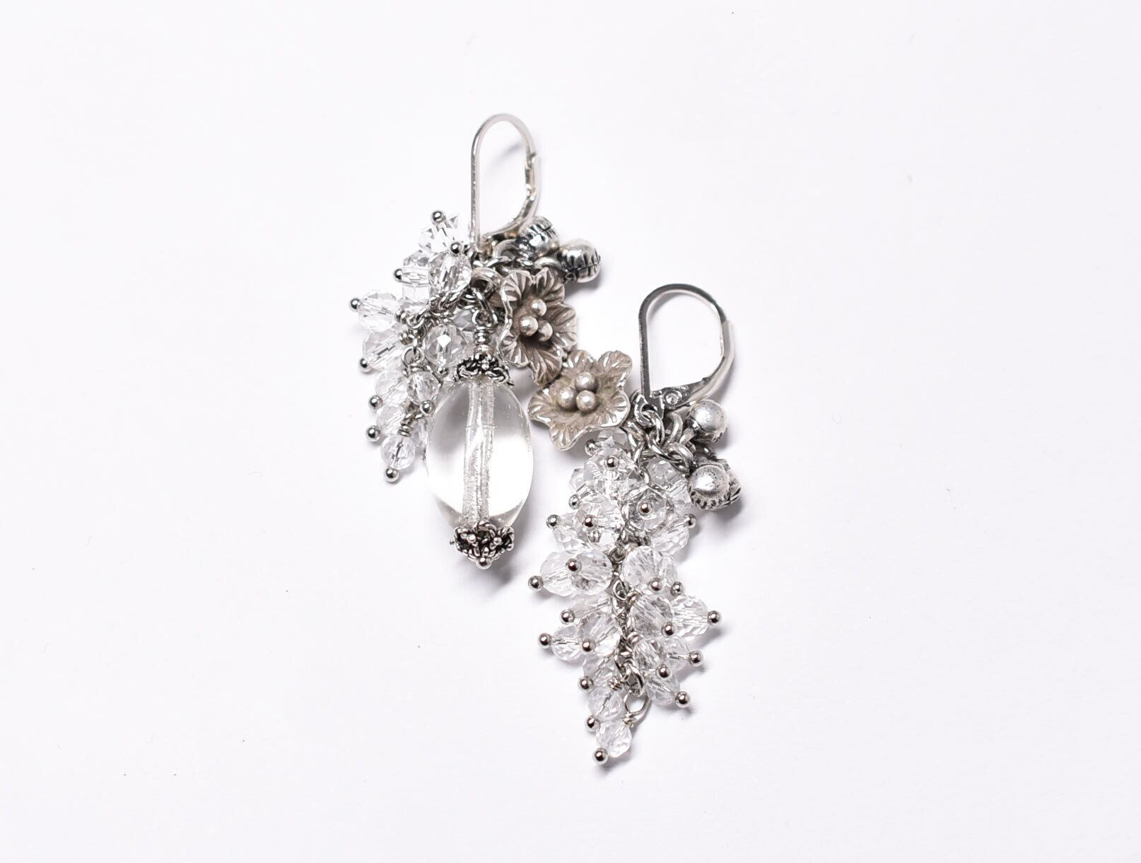 アンティークボヘミアビーズとたわわなクォーツ、カレンシルバーのお花と、インド鈴のピアス
