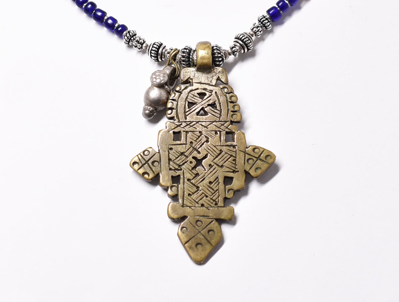 エチオピアンクロスをはじめ、様々なメタルビーズ、素材が楽しめるボリュームあるネックレスです。