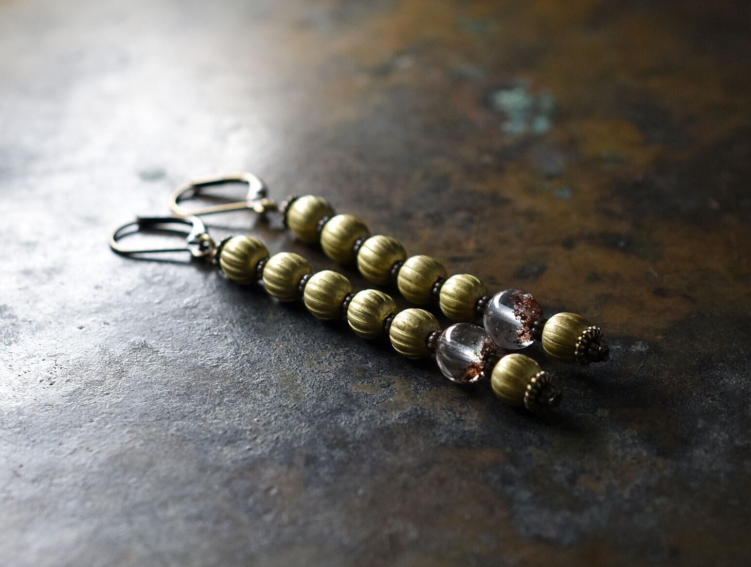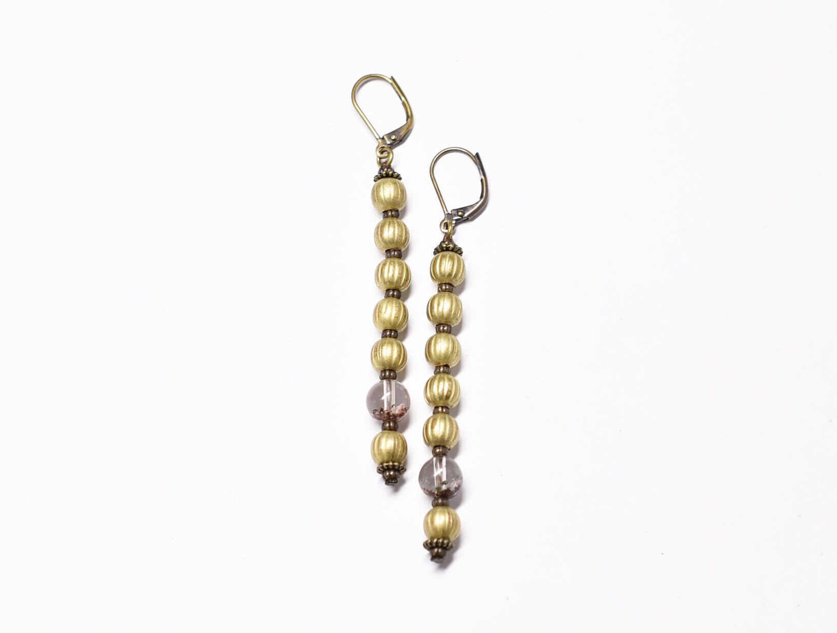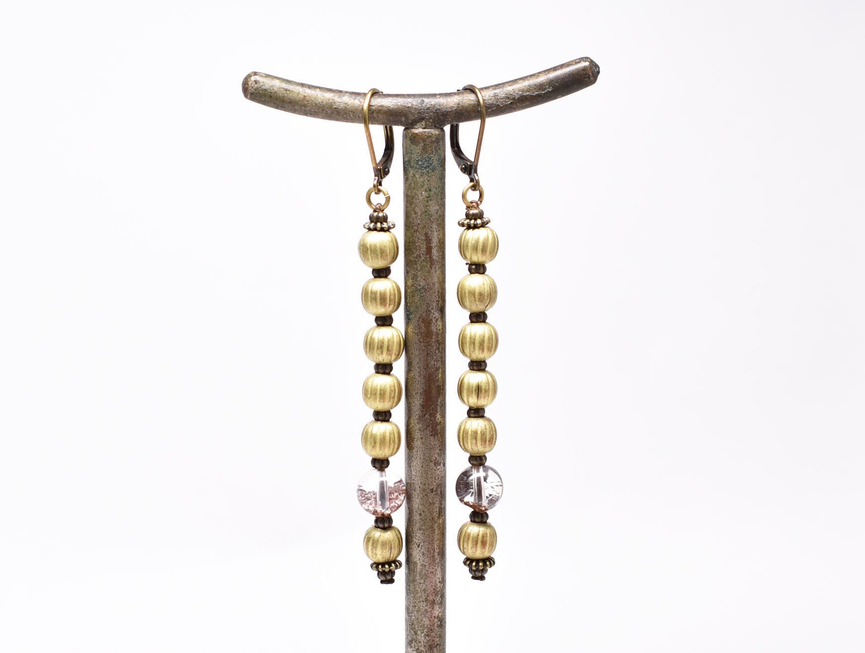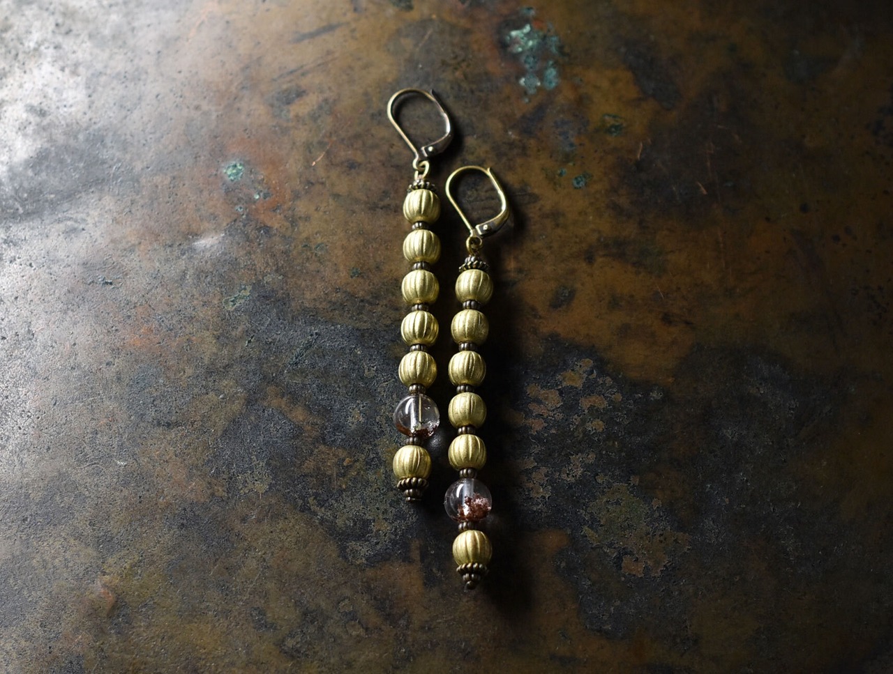 蜜柑ブラスとガーデンクォーツの一連ピアス