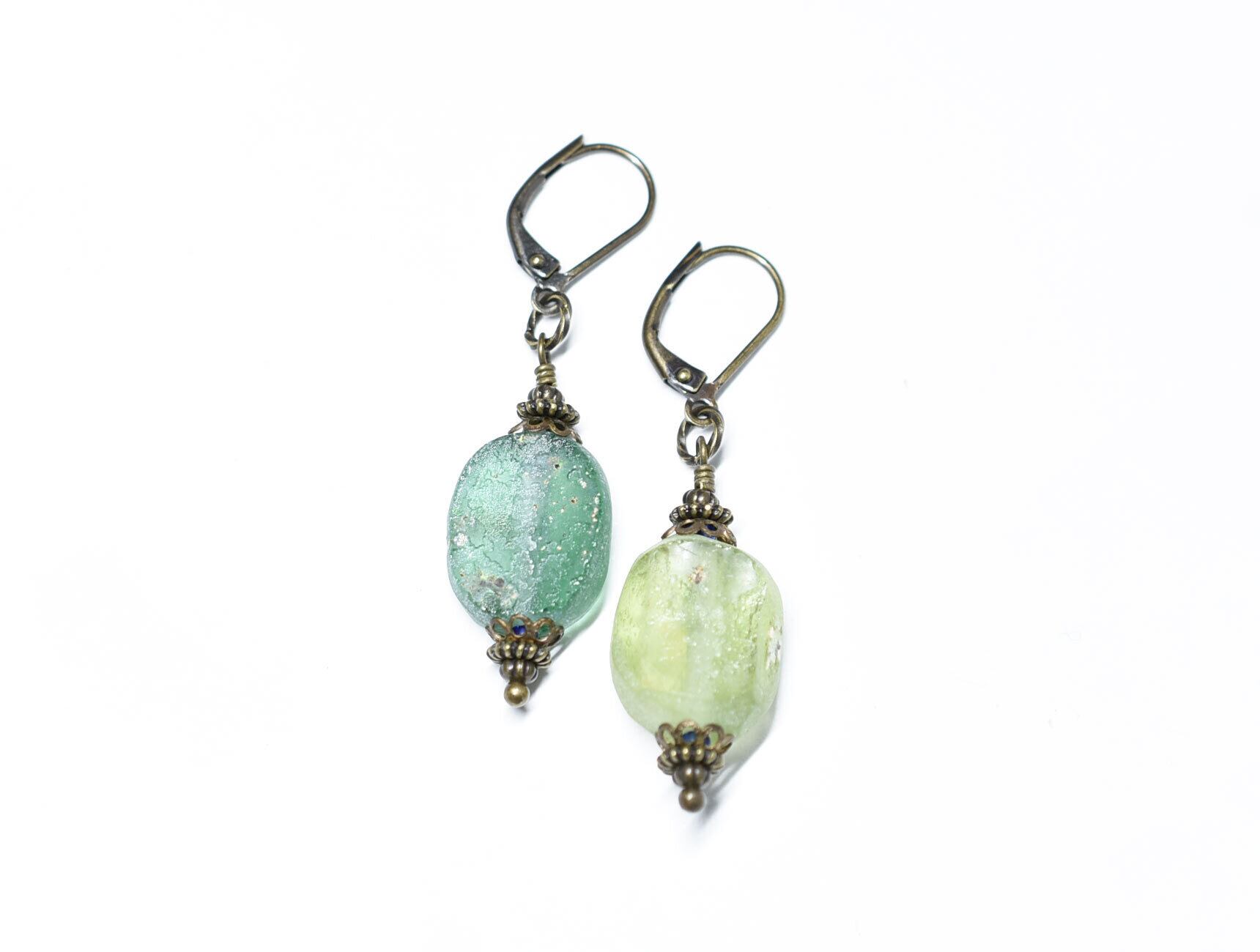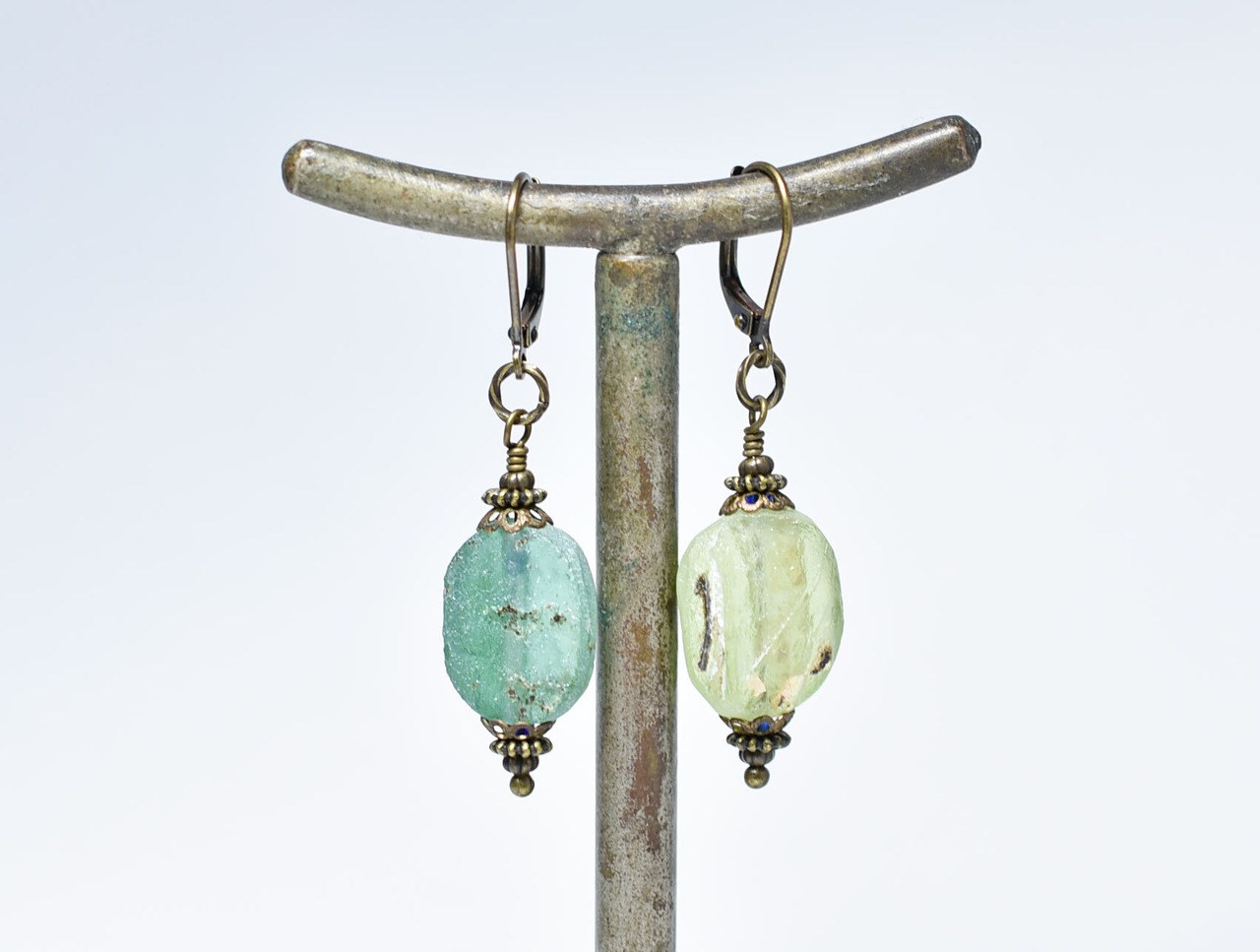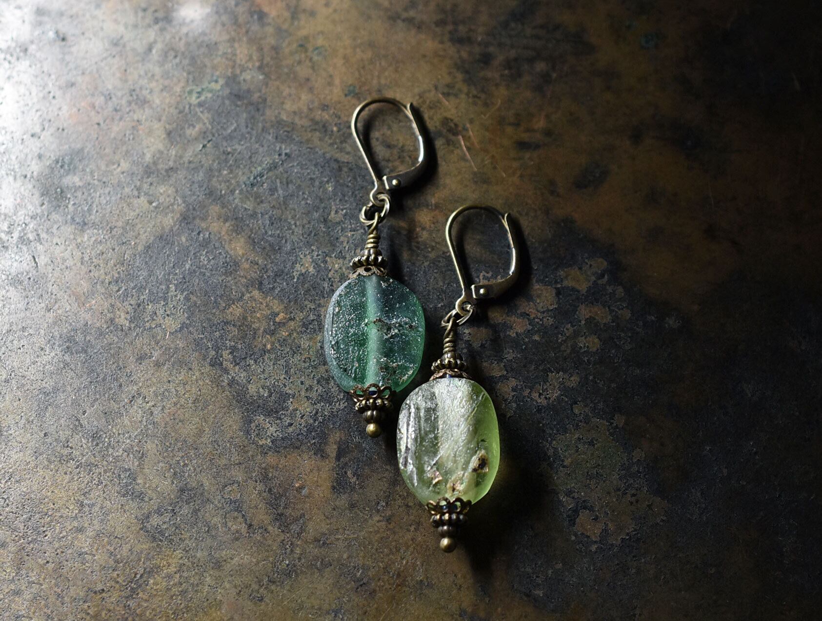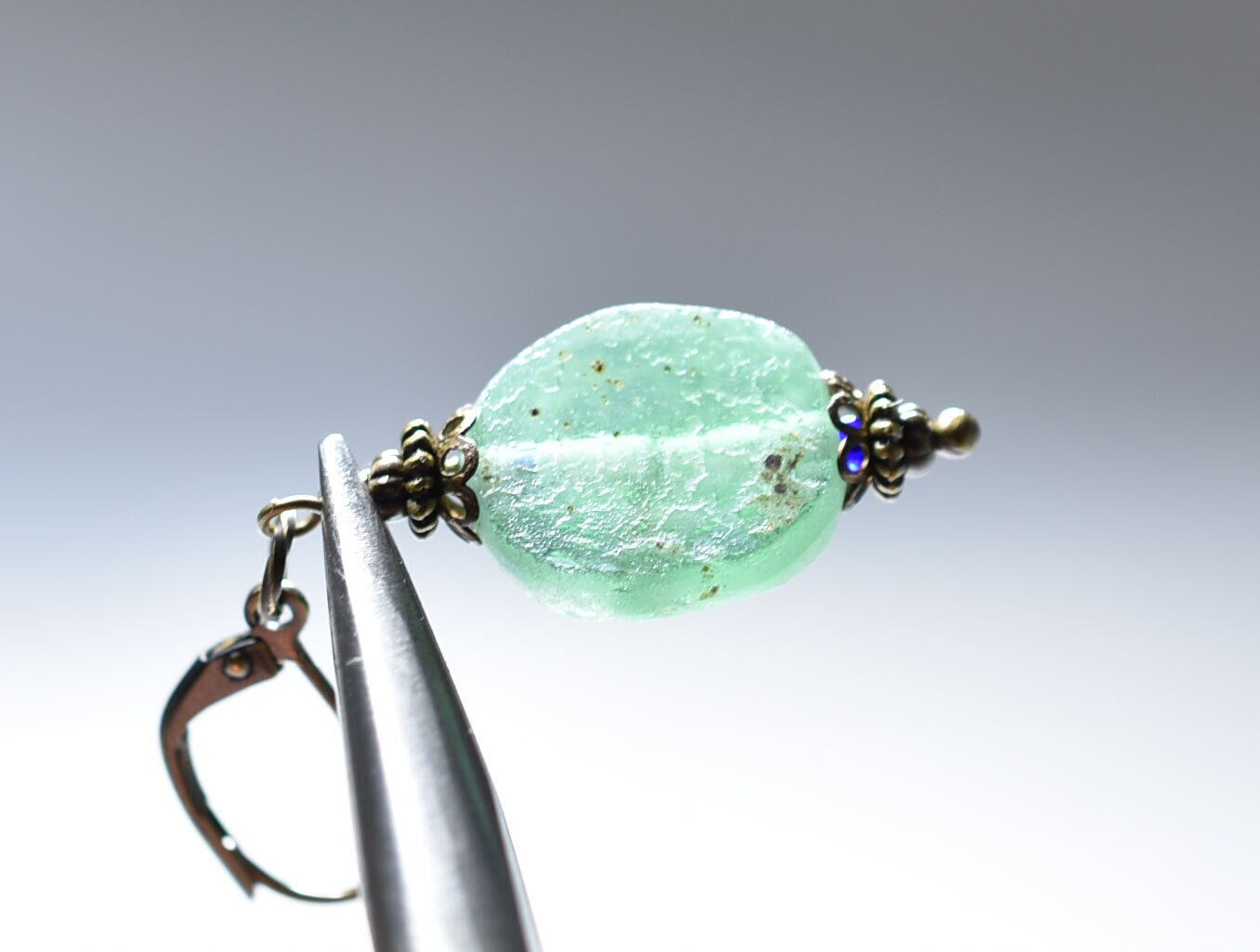 古代ガラスの味わいを楽しめる、細部のパーツもこだわったピアスです。
