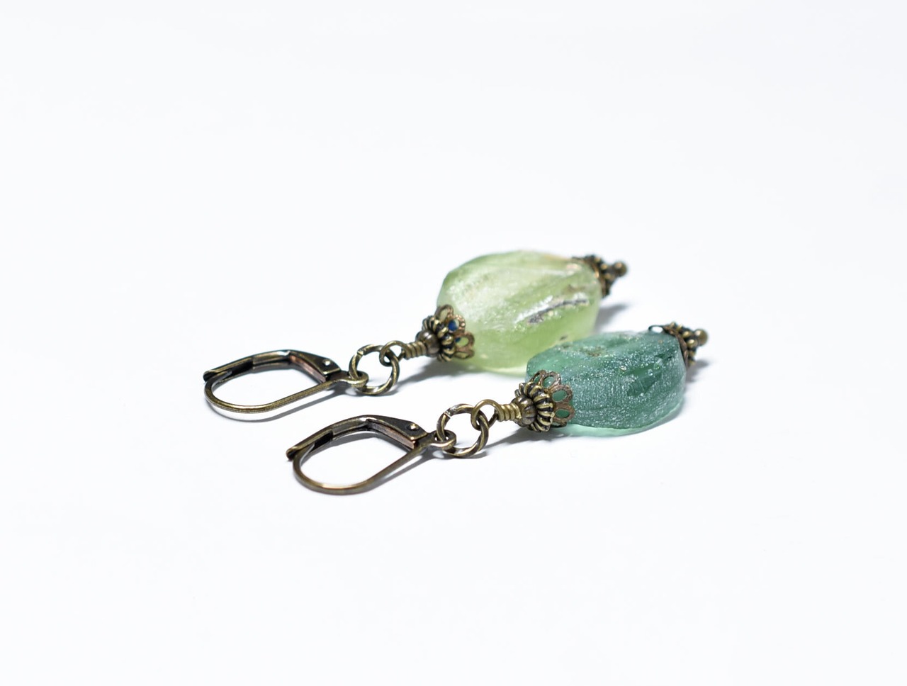 ローマングラスの上下の繊細な装飾が施された飾りは、アンティークビーズを繋いでいたネックレスなどに含まれていたものです。