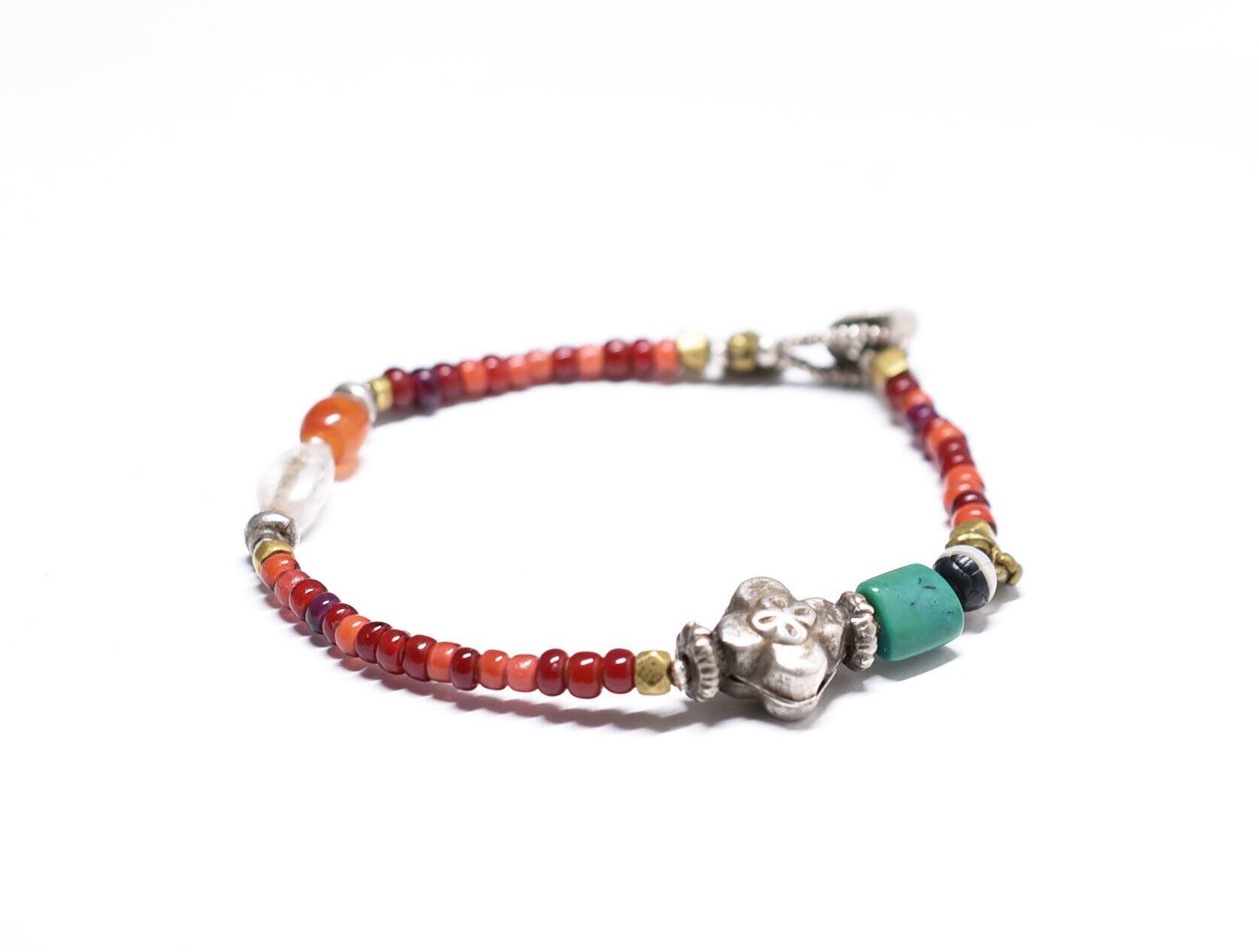 oldヒマーチャルシルバーとoldチベタンターコイズ、古代瑪瑙、古代水晶、ミゾーラムカーネリアン、血赤&金赤ホワイトハーツのブレス