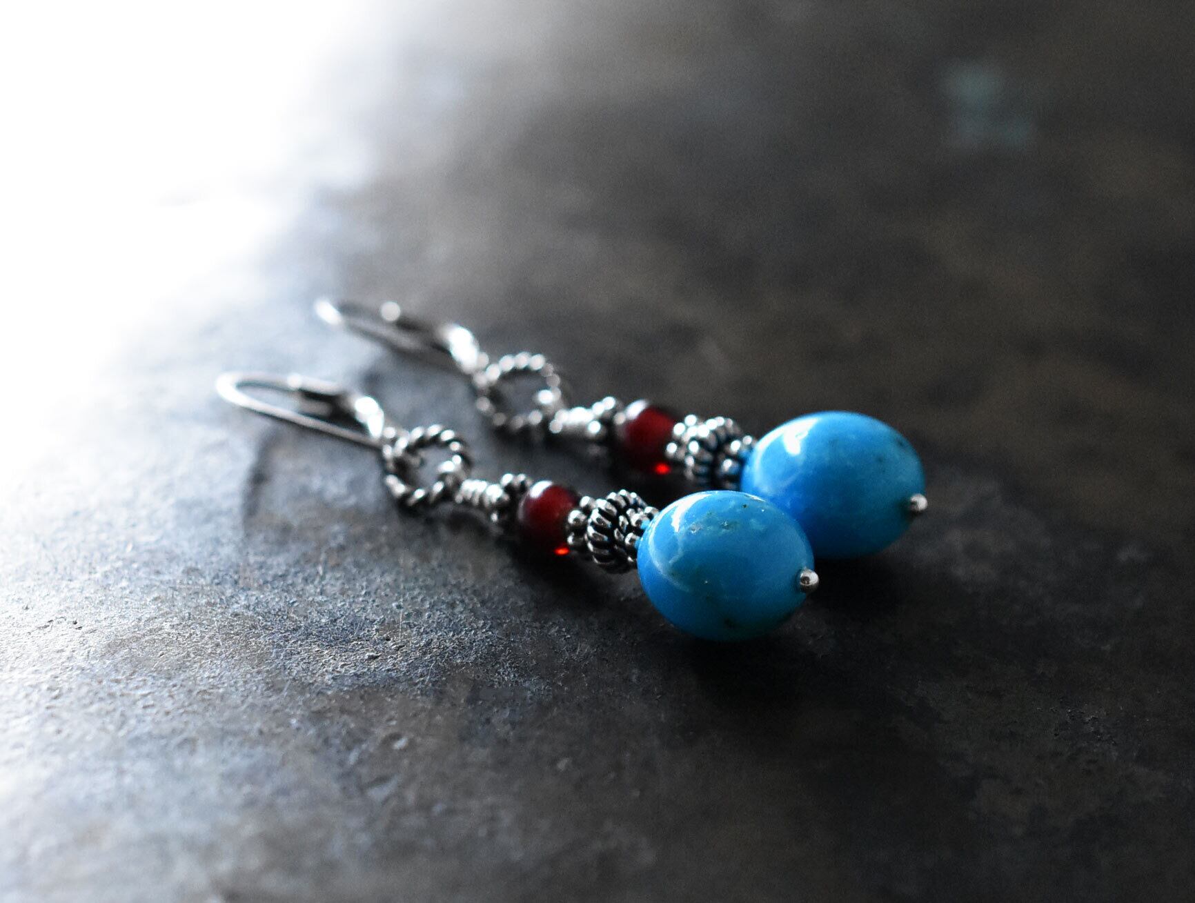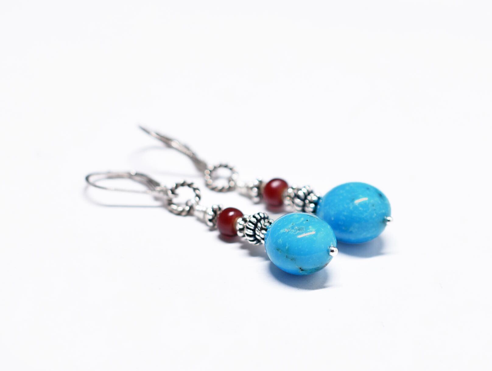 キングマンターコイズとアンティーク血赤ホワイトハーツ、シルバービーズのピアス