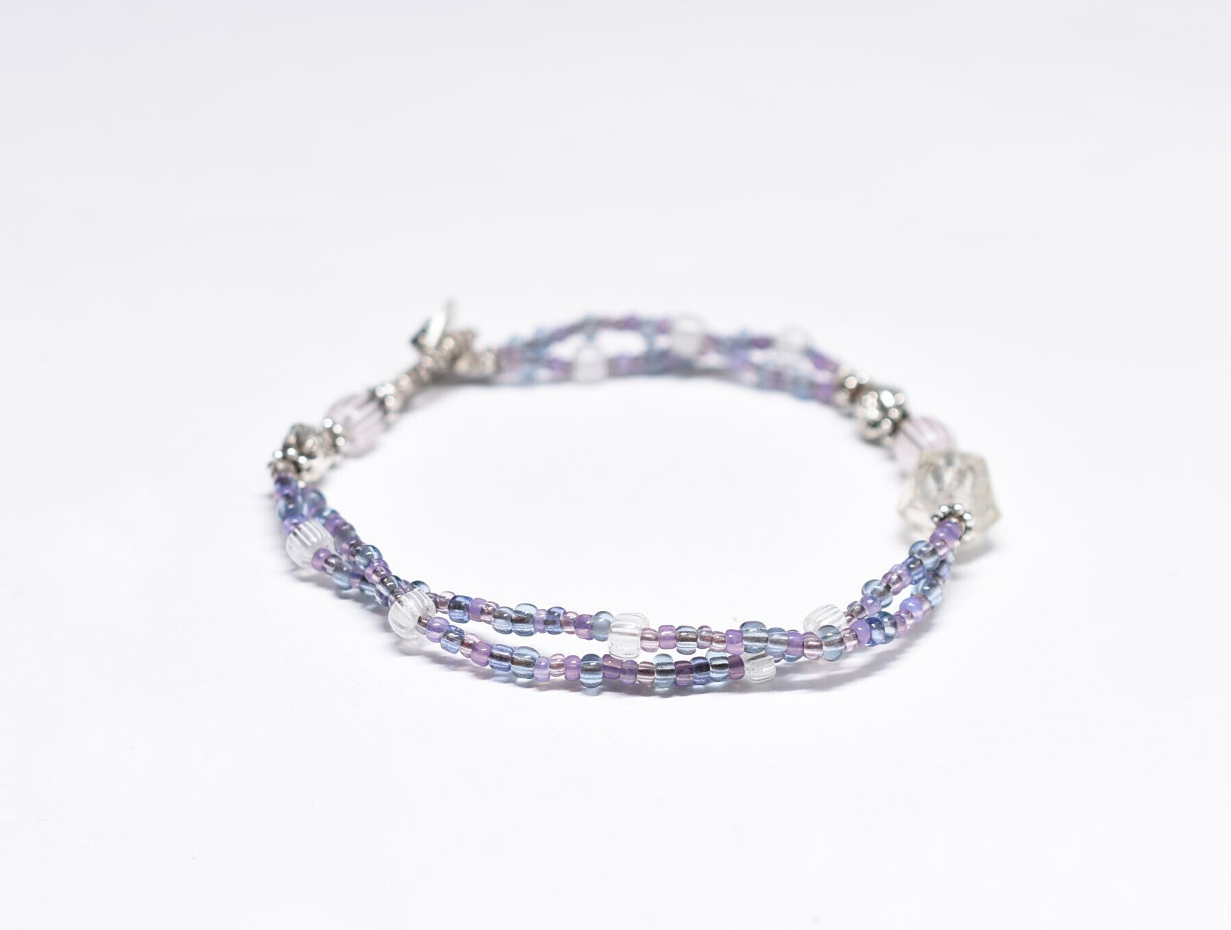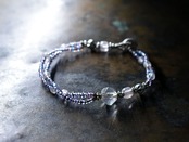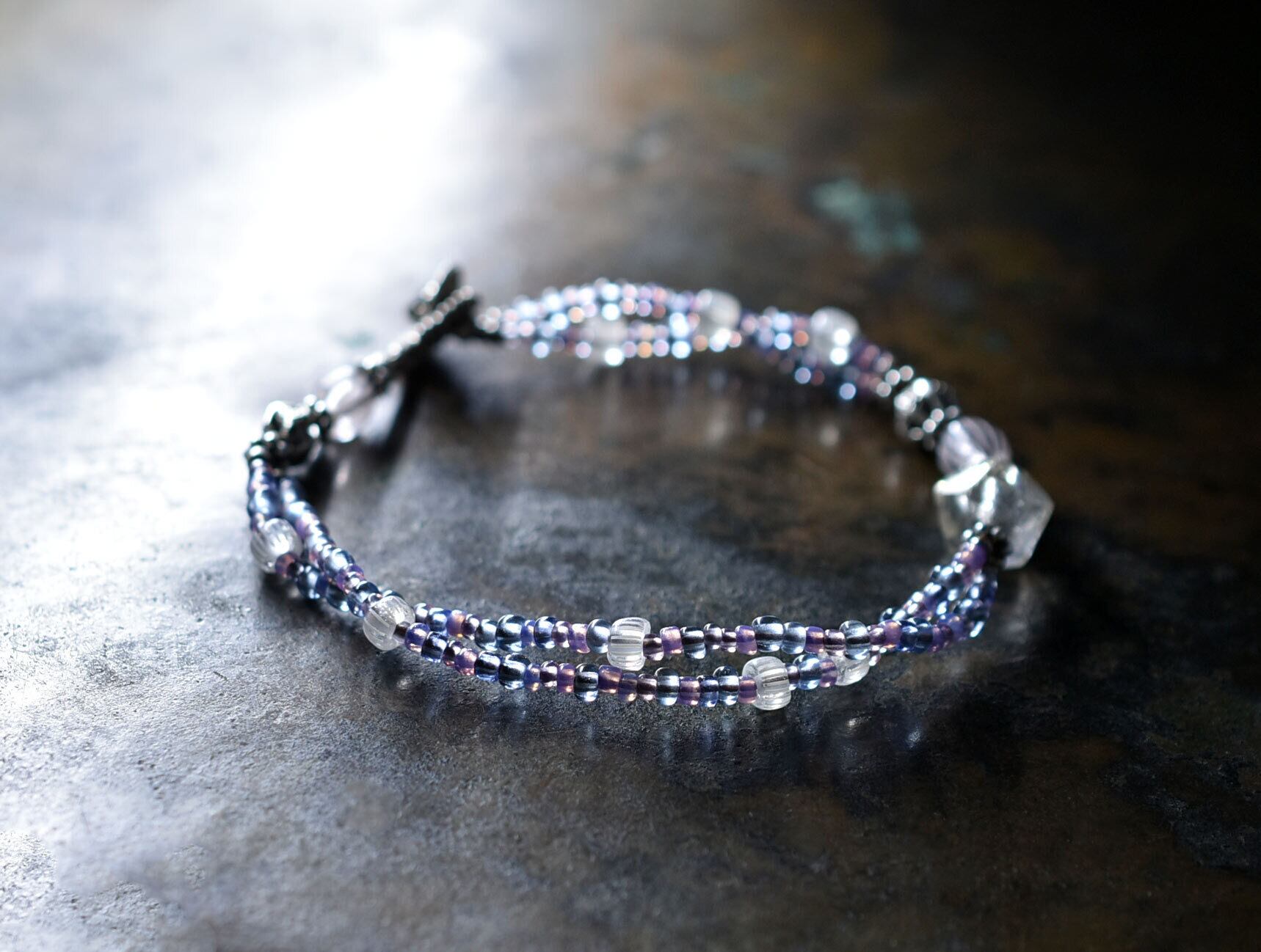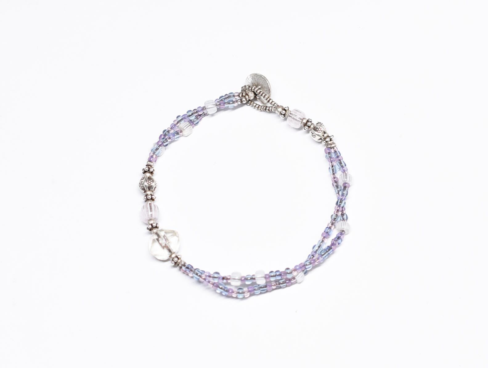 小さなパープルやピンクオパール、青藤色などのビーズはフランスのヴィンテージビーズです。