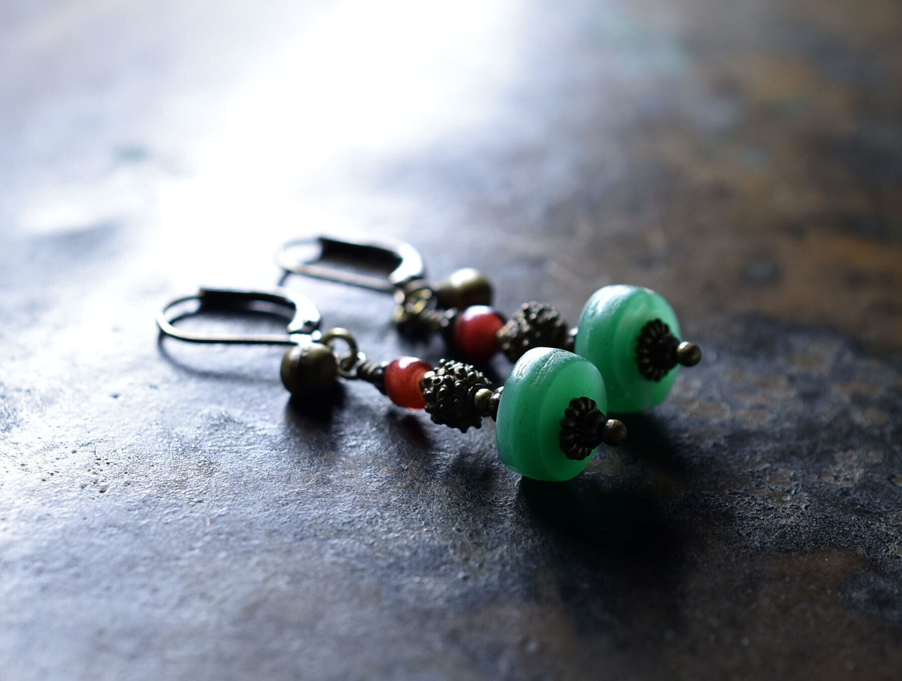 グリーンのビーズはチェコで作られ、アフリカへ輸出されたアンティークビーズです。(20世紀初頭)