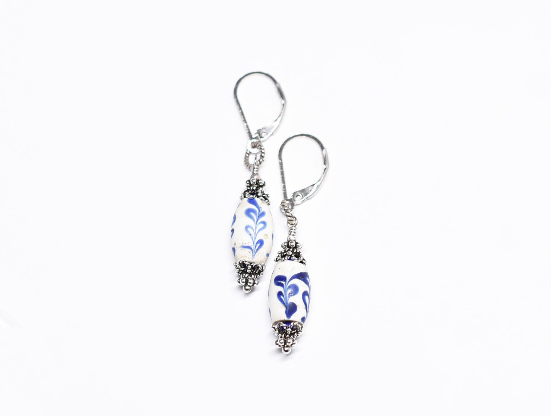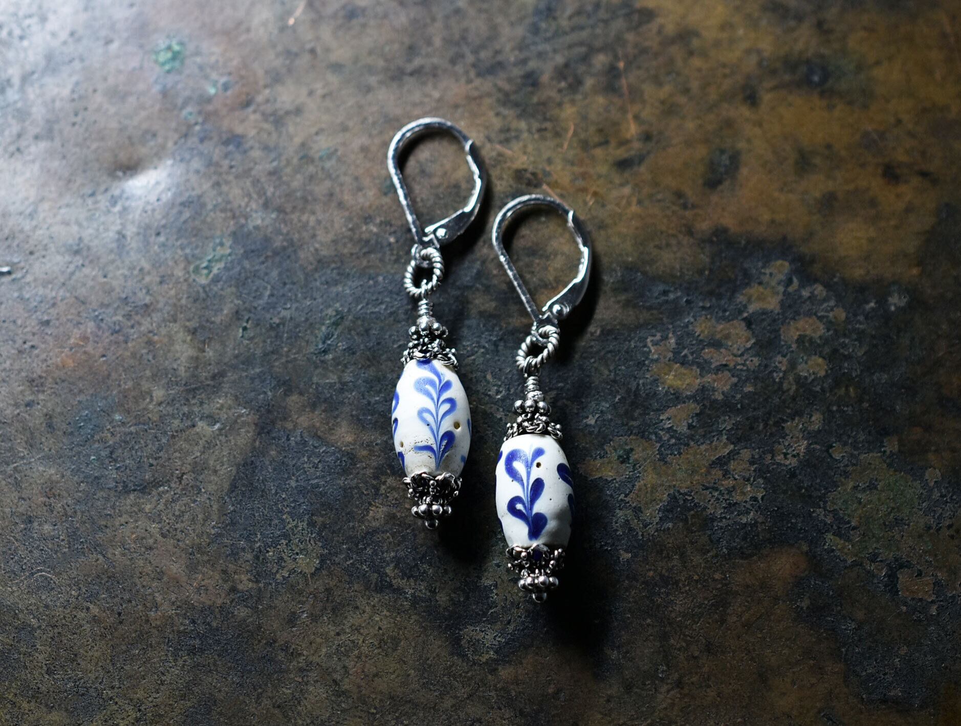 アンティークヴェネチアダッチデルフトと隠しブルービーズのピアス