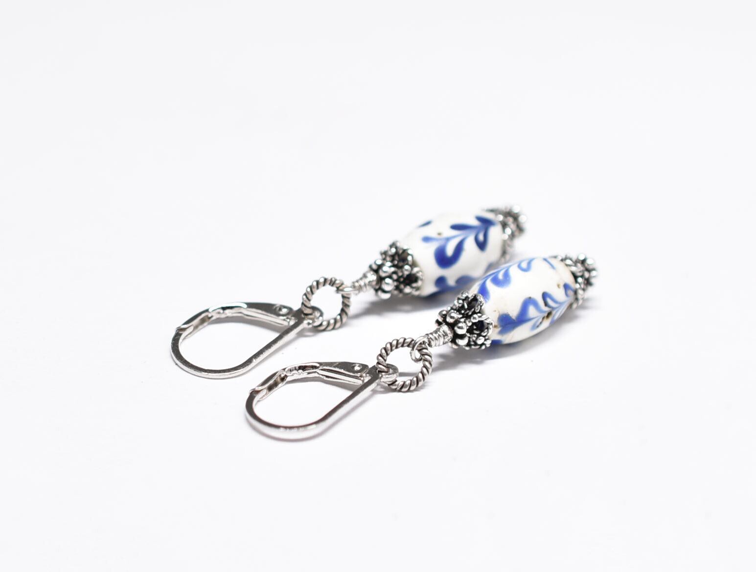 アンティークヴェネチアダッチデルフトと隠しブルービーズのピアスです。