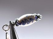 白い陶器のような楕円型のボディーにブルーの模様が施されているビーズはダッチデルフトと呼ばれるビーズです。