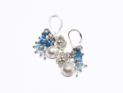 鈴とお花カレンシルバー、たわわなアパタイト、アクアマリン、クォーツ、インドシルバー鈴を繋いだピアスです。