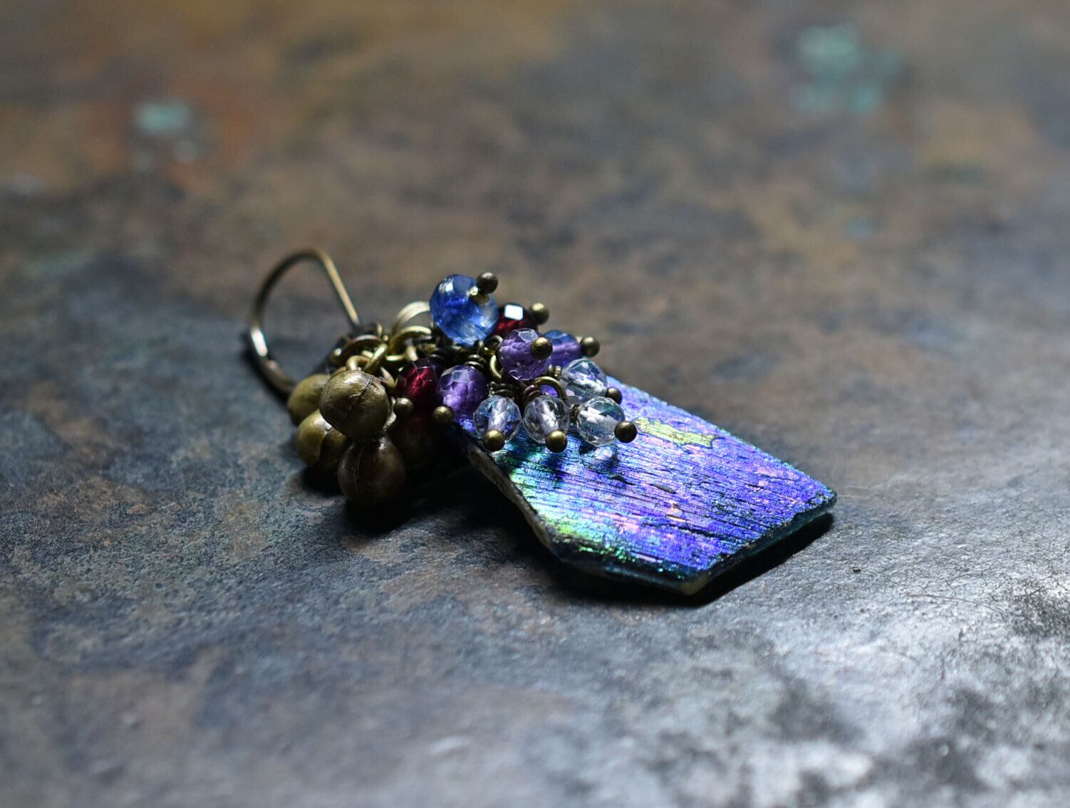 小さなストーンビーズはガーネット、アメジスト、クォーツ、カイヤナイトです。