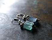 スクエア型薄っすら銀化ローマングラスと民族鈴のピアス
