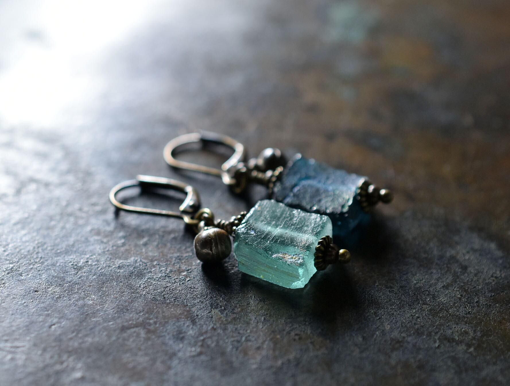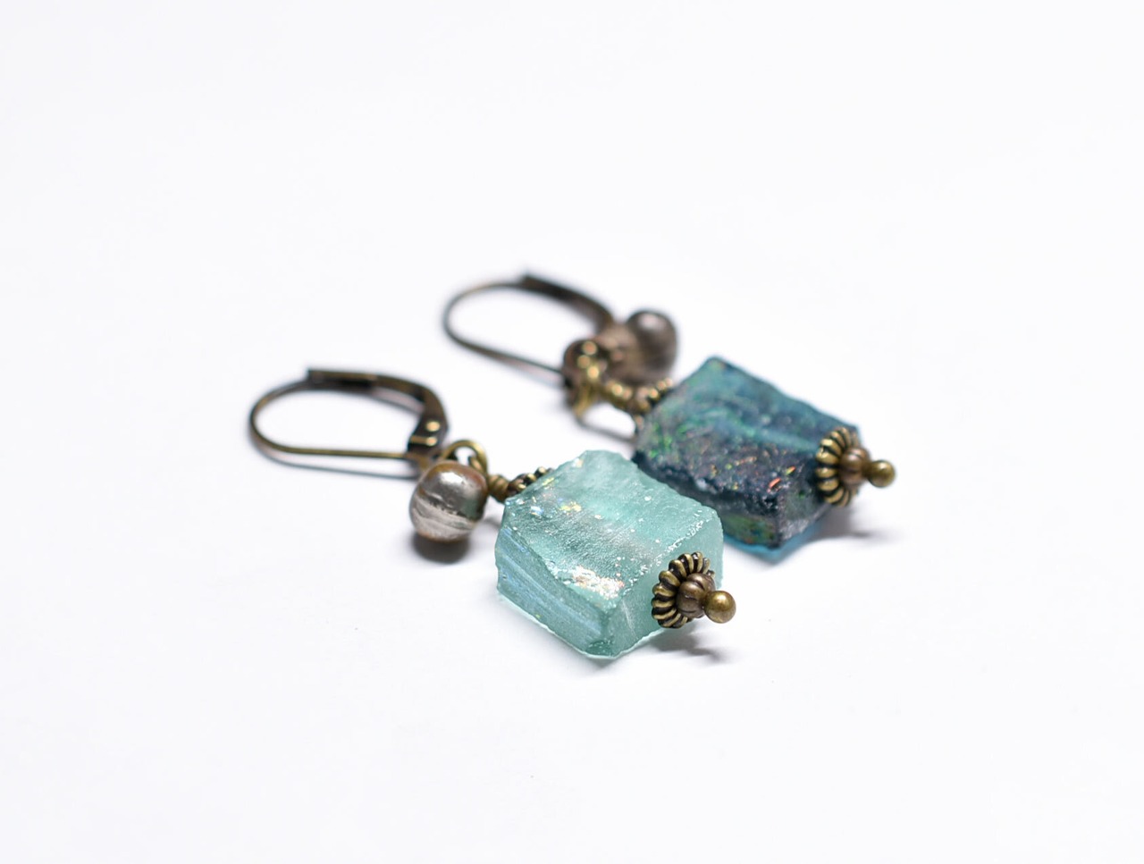 古代ガラスの味わいを楽しめる素朴な雰囲気のピアスです。