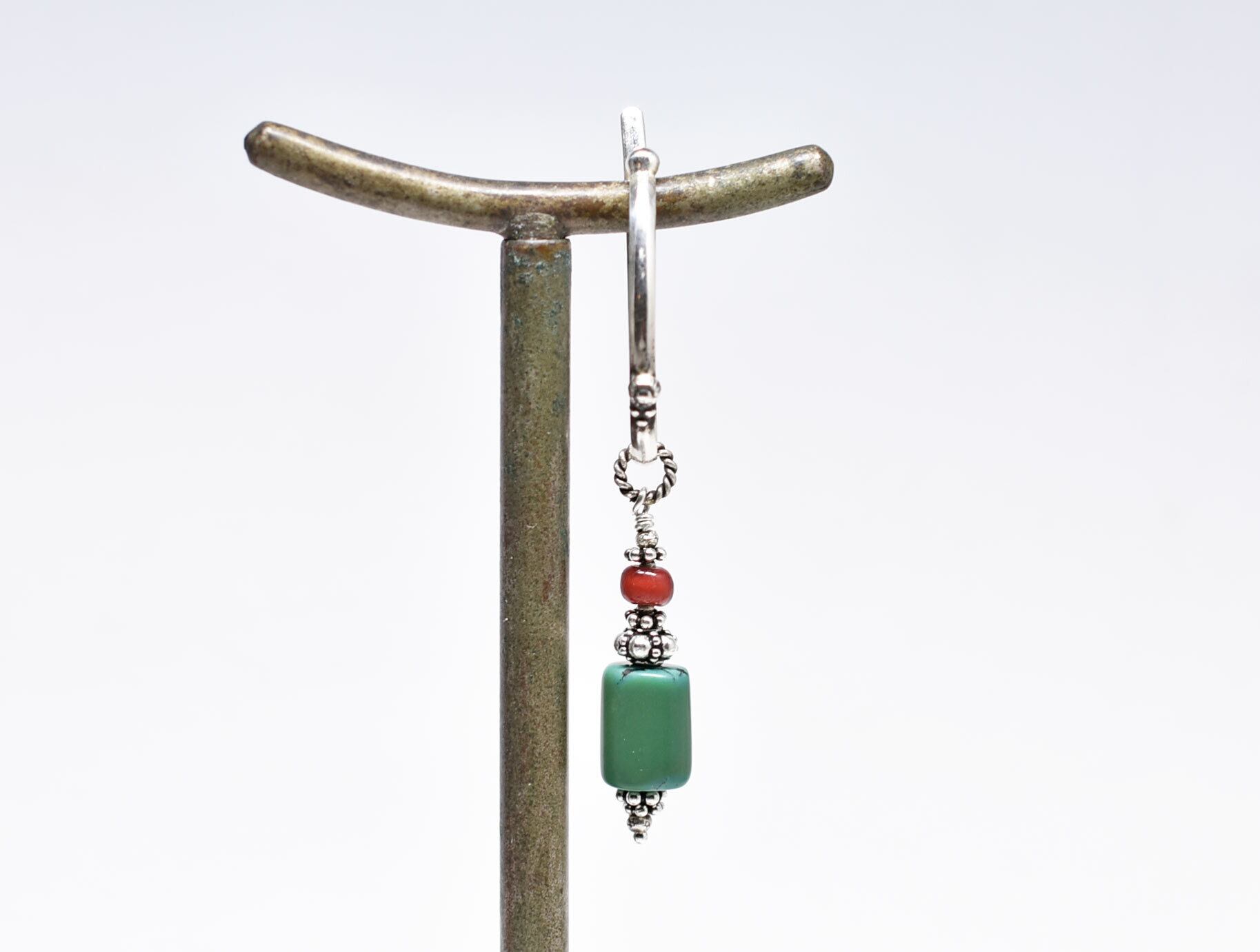 素材:oldチベタンターコイズ、ガラス、カレンシルバー、インドシルバー、シルバー