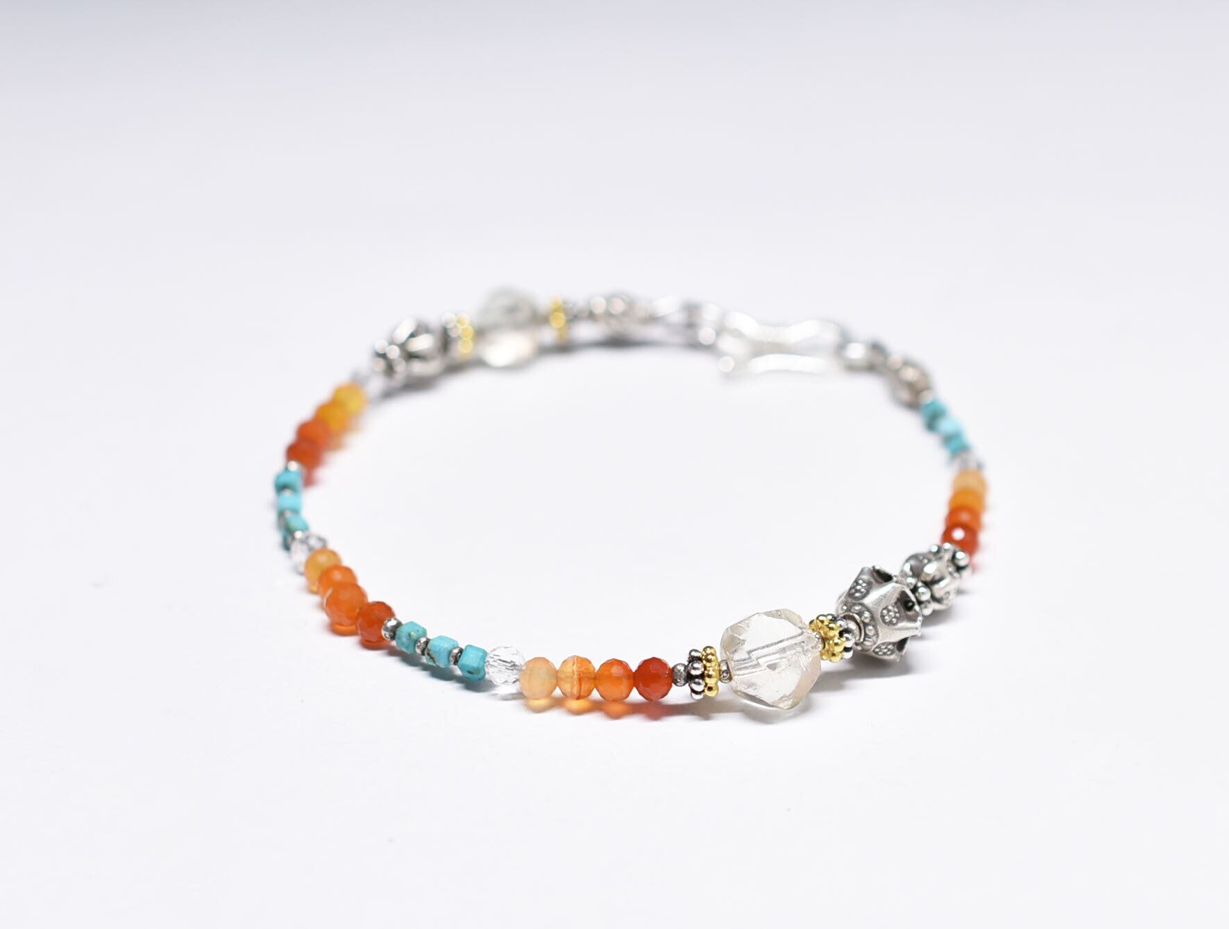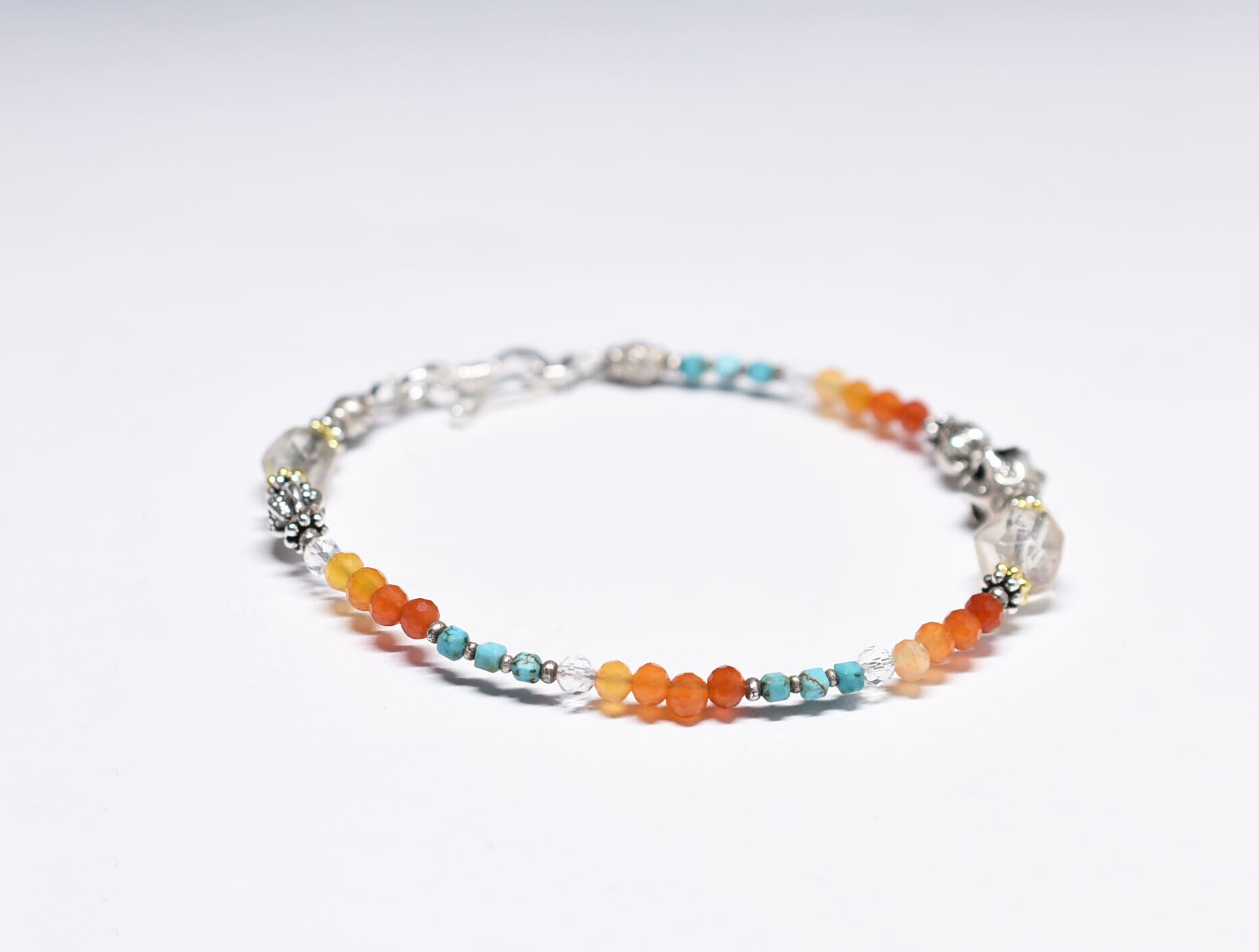 素材:ガラス、カーネリアン、ターコイズ、クォーツ、カレンシルバー、シルバー、ワイヤー