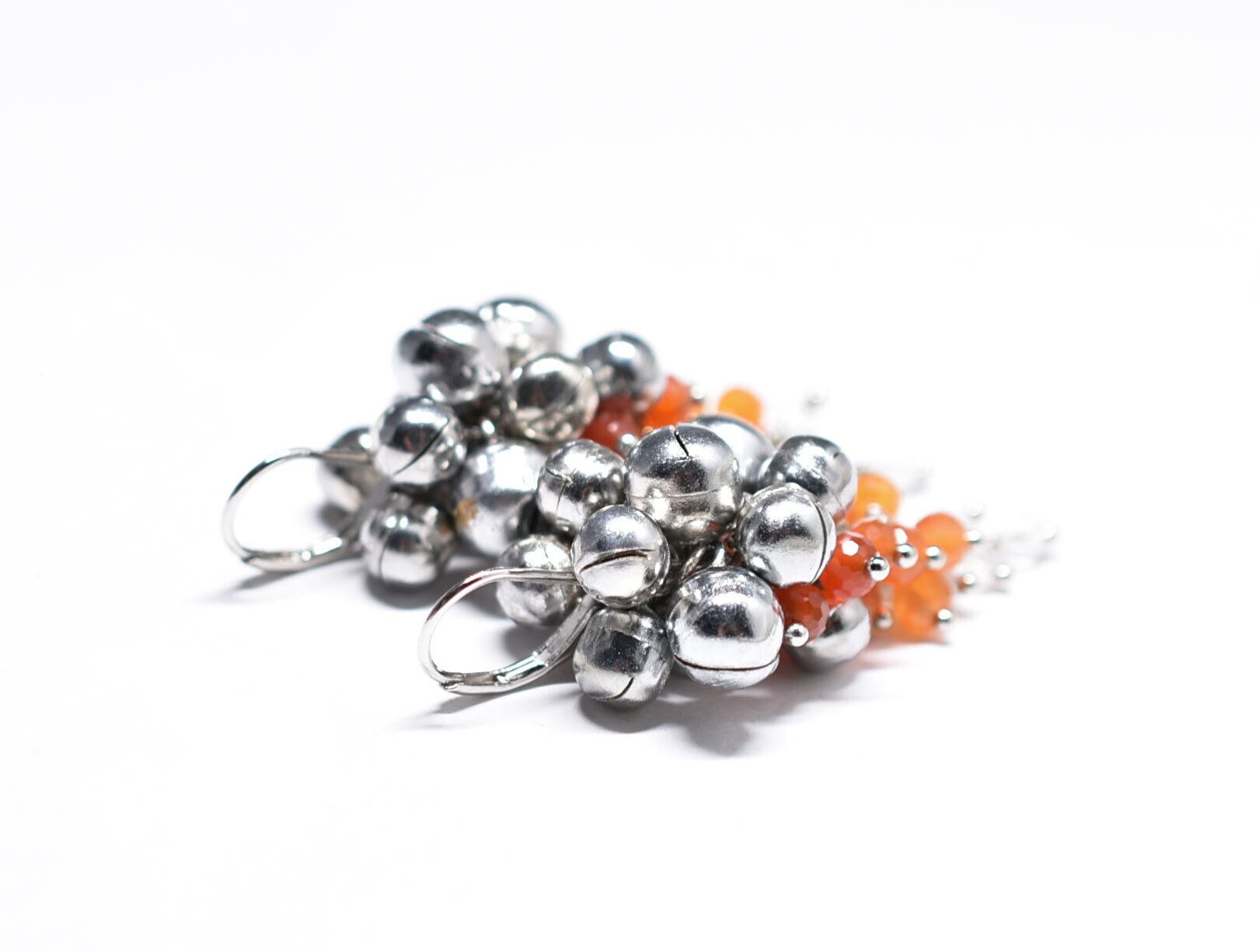 たわわな鈴とアクアマリンを繋いだ少しボリュームのあるピアスです。
