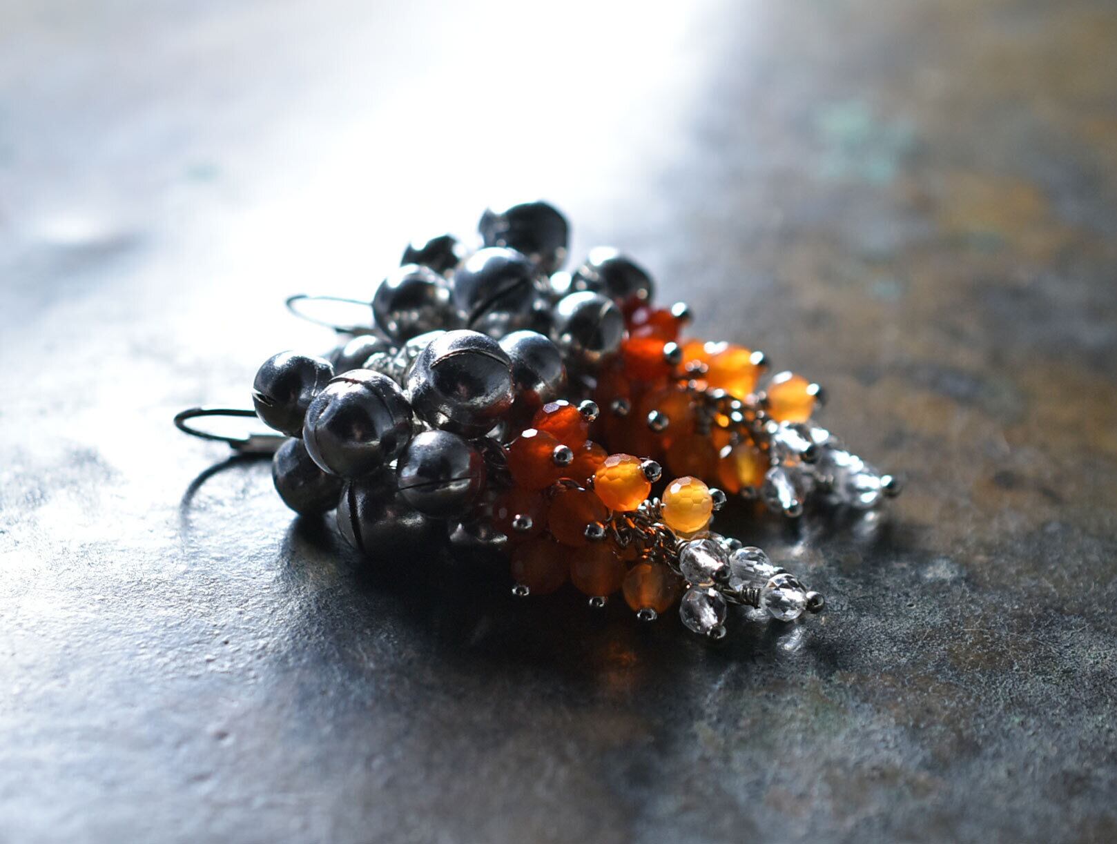 カットが施されたカーネリアンをたわわに実らせました。淡いグラデーションにしています。