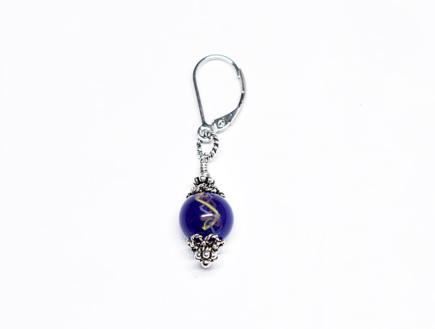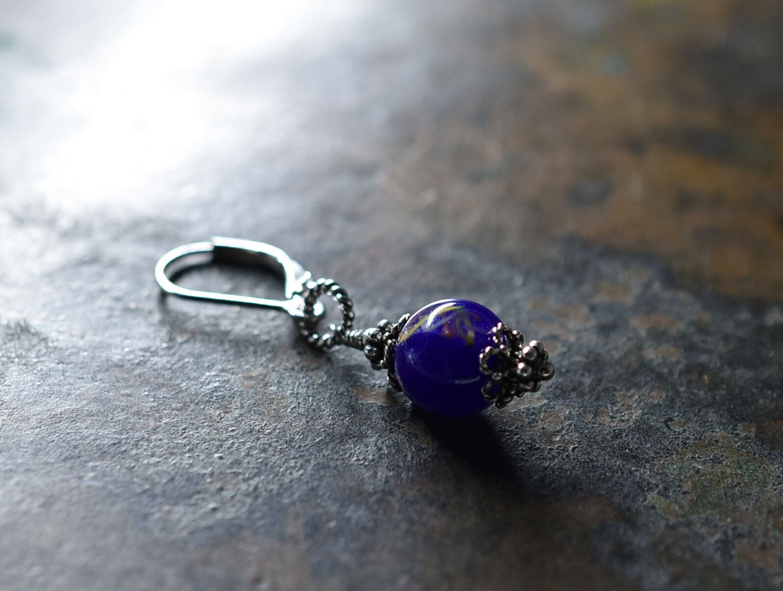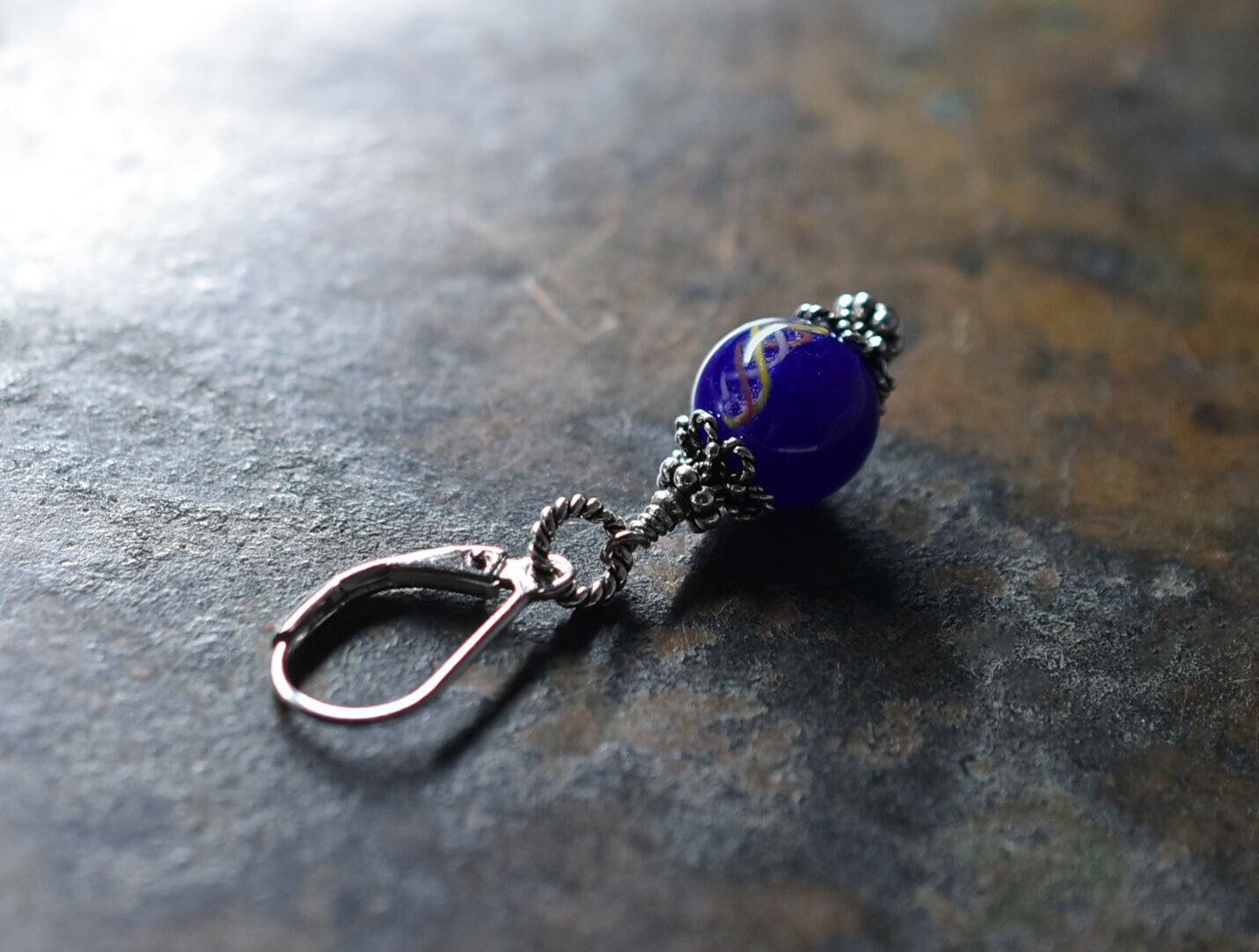 3色波模様艶やかな瑠璃色江戸とんぼ玉を繋いだ片耳のピアスです。