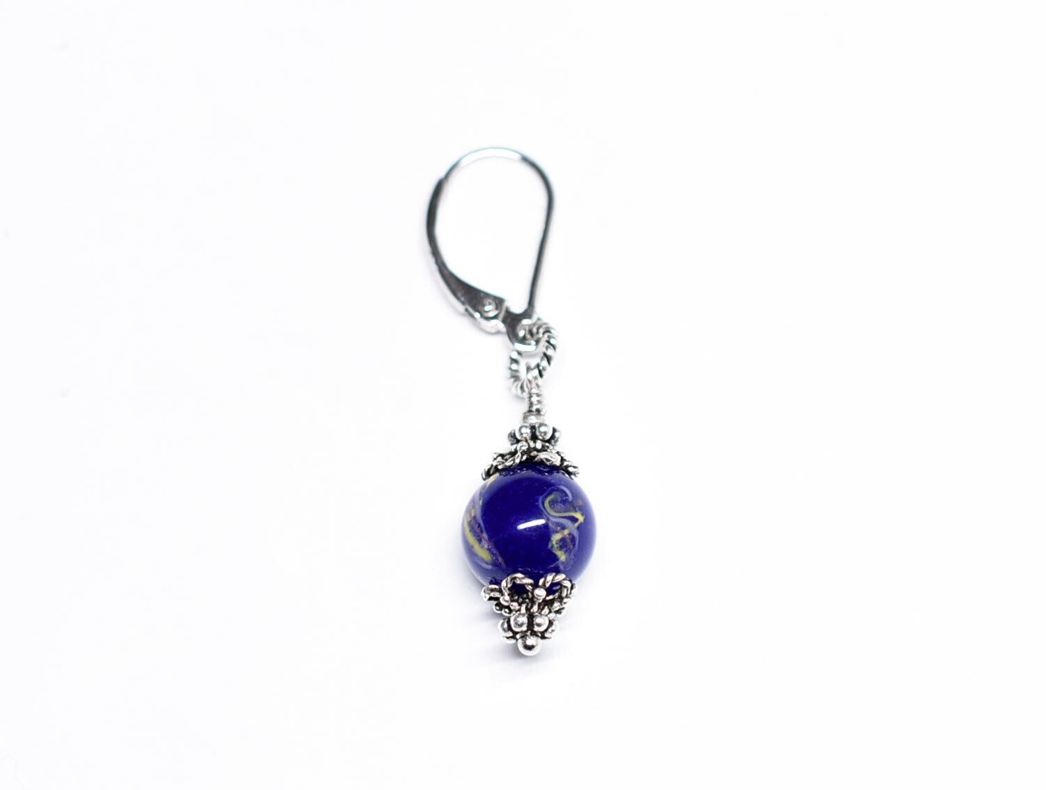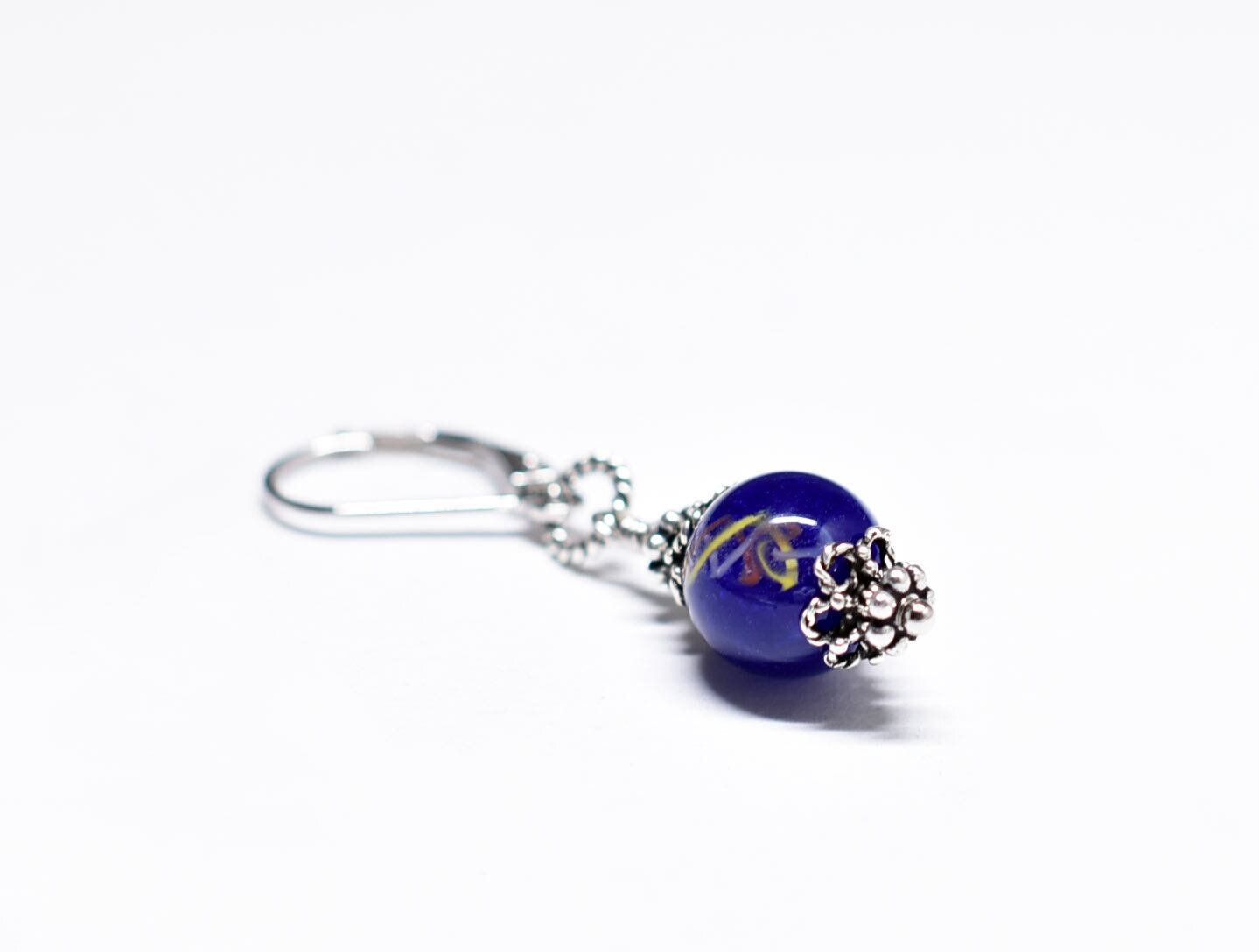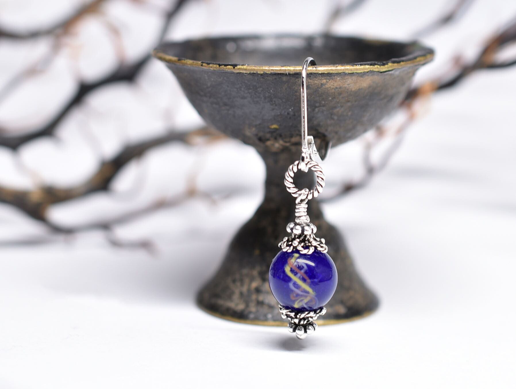 3色波模様艶やかな瑠璃色江戸とんぼ玉を繋いだ片耳のピアスです。