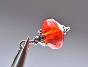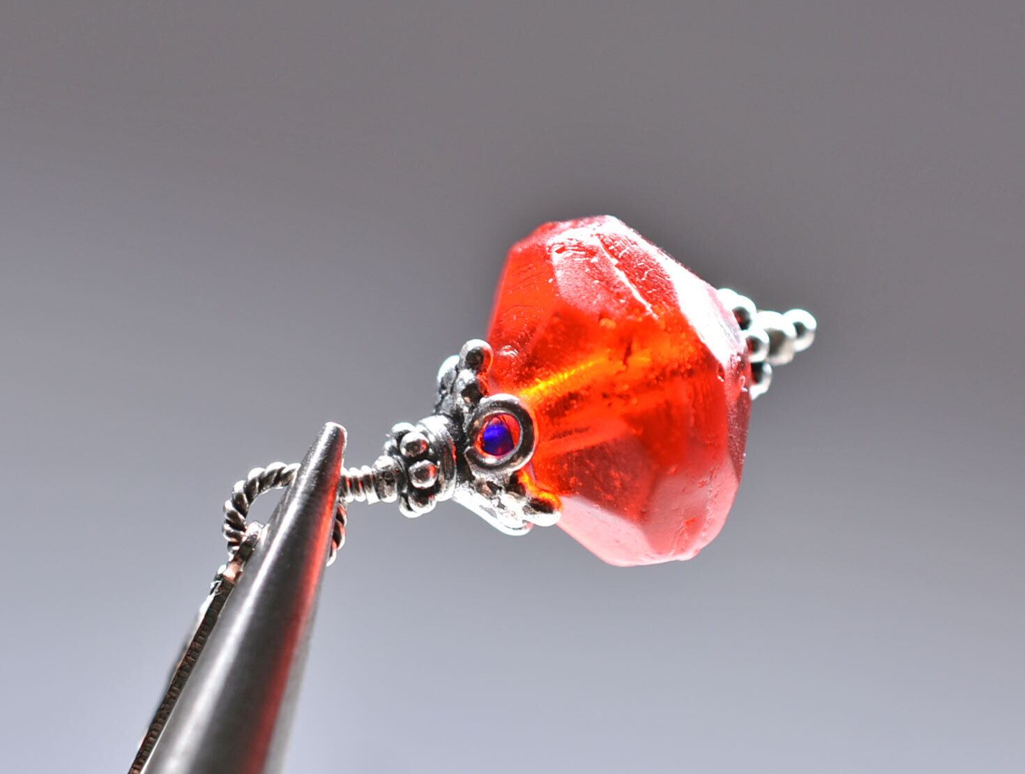 真っ赤な算盤型アンティークボヘミアビーズの上部にはアンティークのヴェネチアブルービーズを忍ばせています。