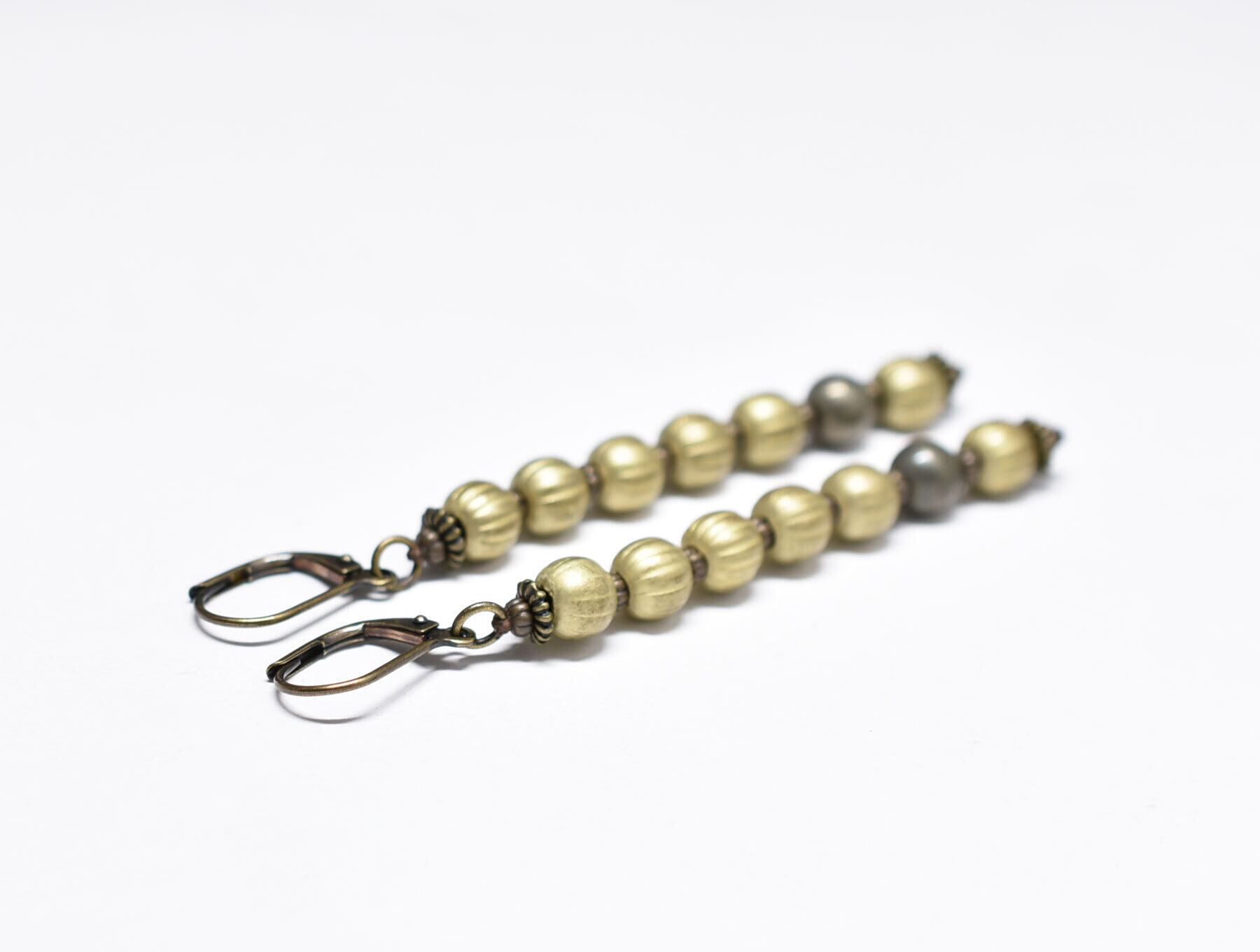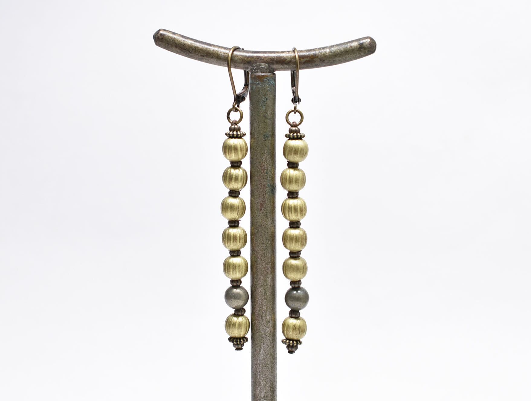蜜柑ブラスとヘマタイトを繋いだピアスです。