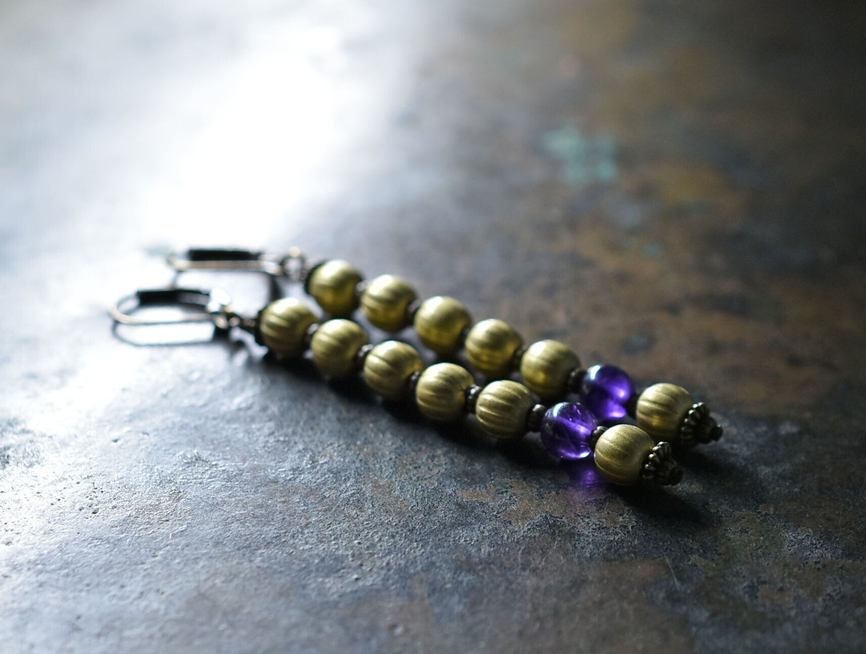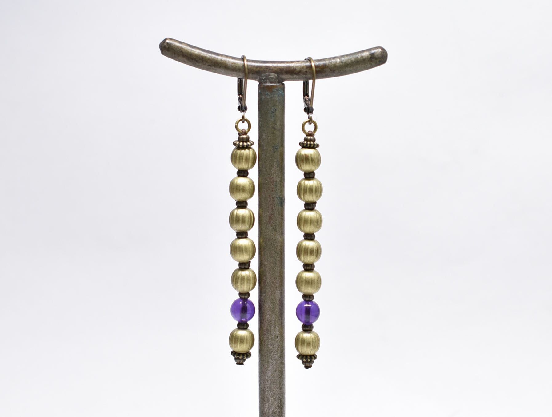 蜜柑ブラスとアメジストを繋いだピアスです。