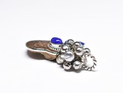 シルバー製の繊細な細工が施されていて多面体カットが施されたラピスが埋め込まれています。