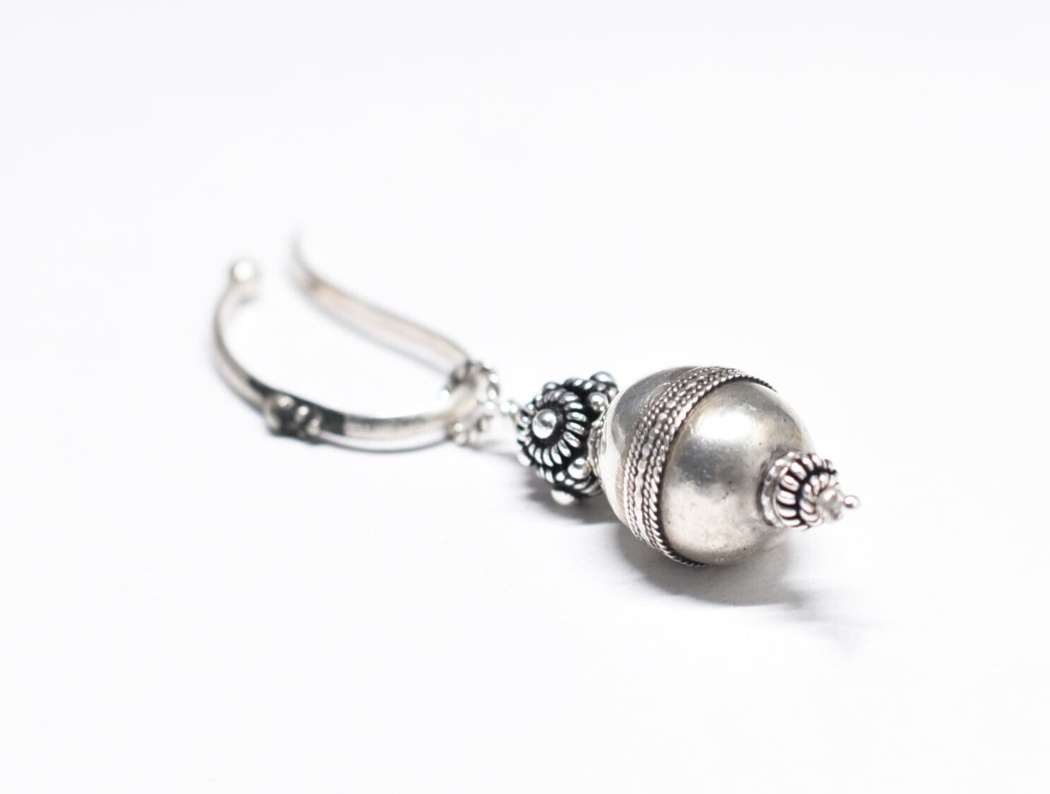 ぷっくり民族ヴィンテージシルバー、繊細細工のシルバービーズを繋いだインドシルバーイヤーカフです。