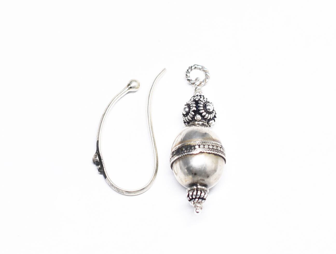 上部の凝った作りのシルバービーズは一つ一つハンドメイドで作られたものです。