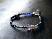 古いガラスビーズやメタルビーズを楽しめる柔らかい色合いのブレスです。