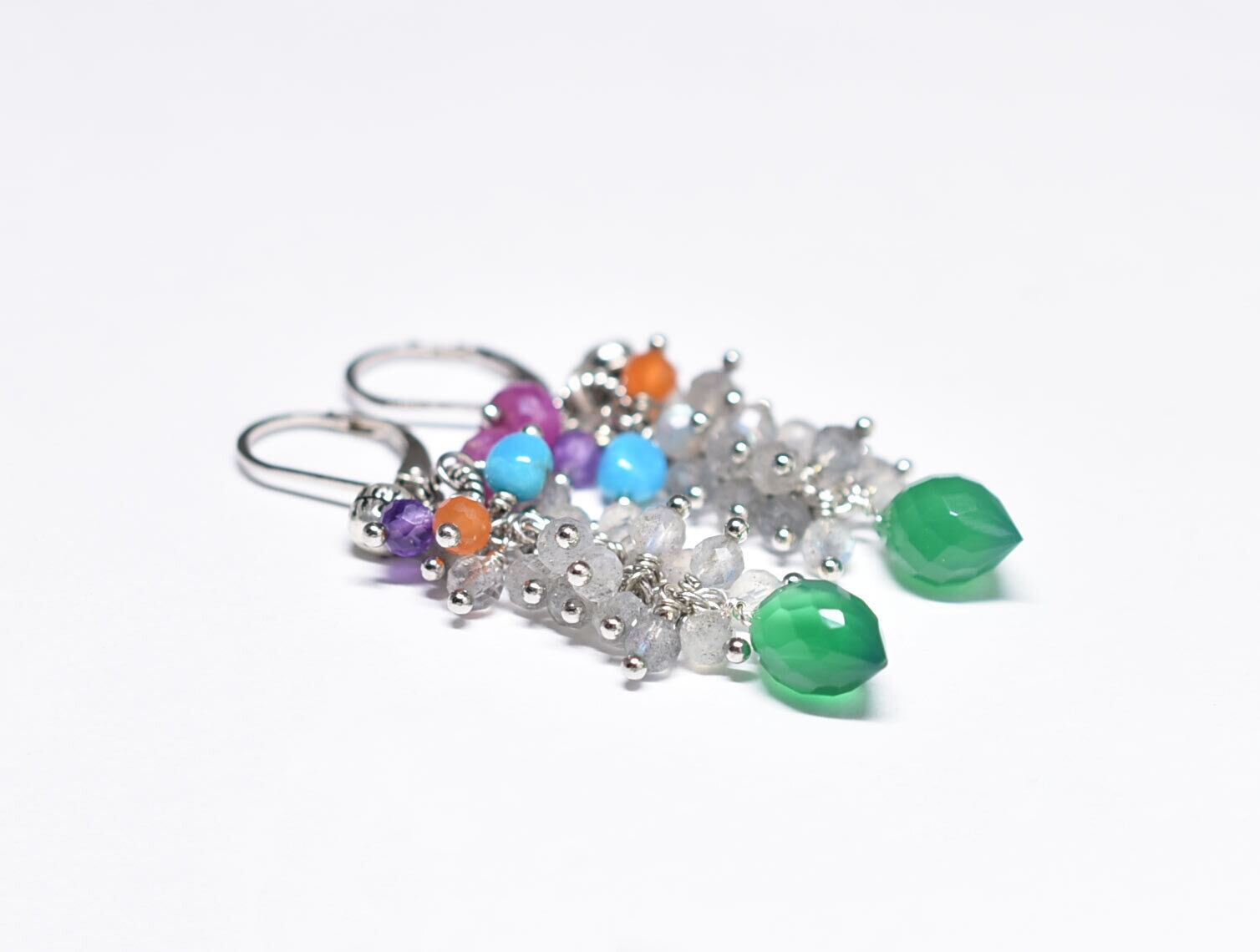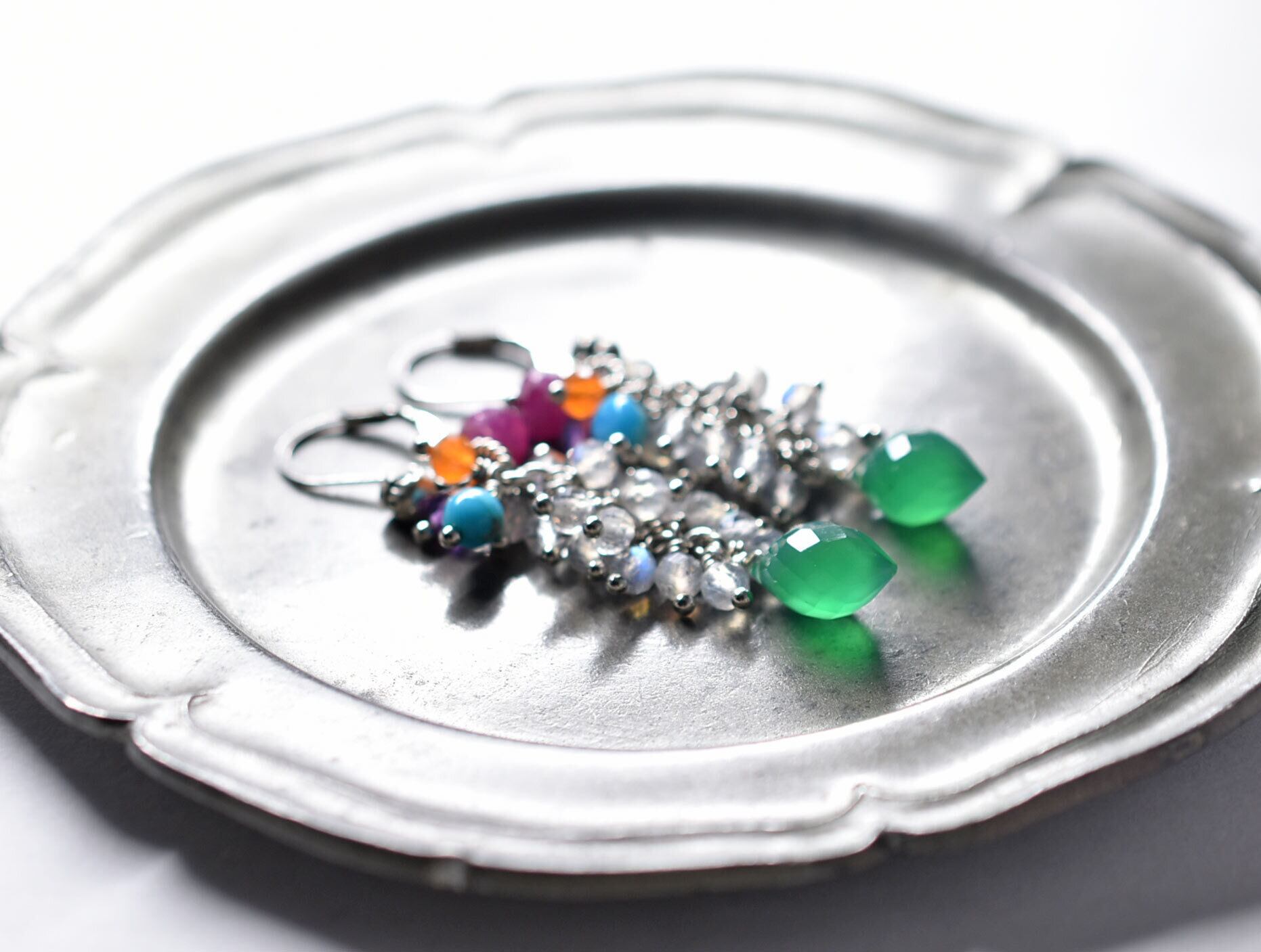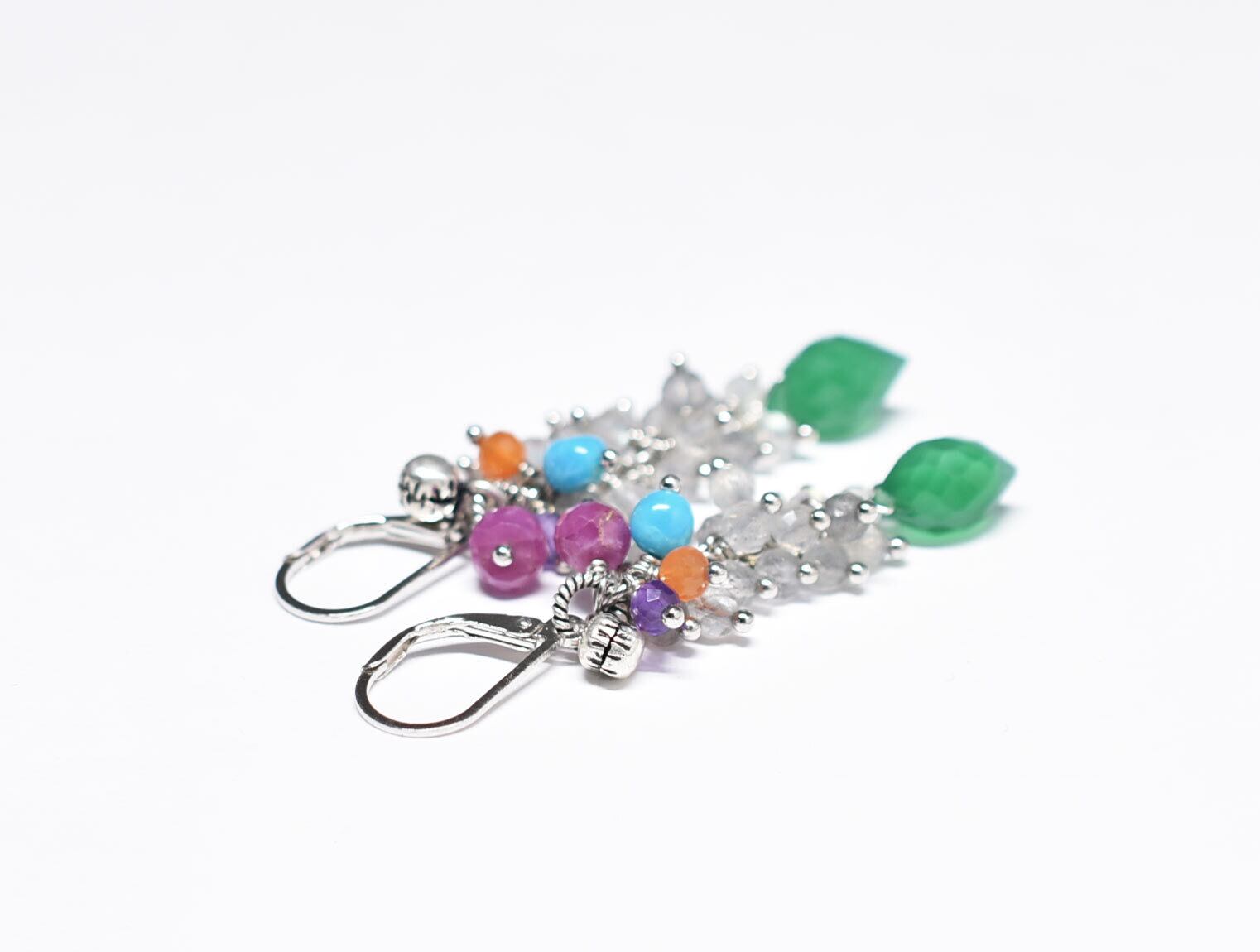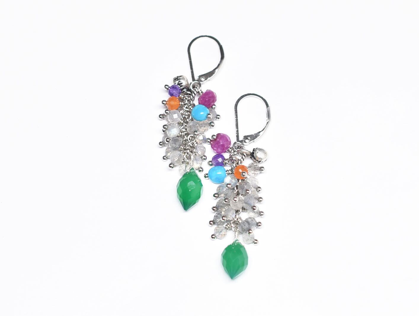 素材:グリーンオニキス、ラブラドライト、キングマンターコイズ、アメジスト、カーネリアン、ルビー、シルバー、カレンシルバー