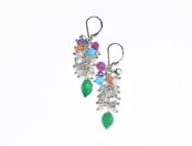 グリーンオニキスとたわわなストーンビーズ、インドシルバー鈴を繋いだピアスです。