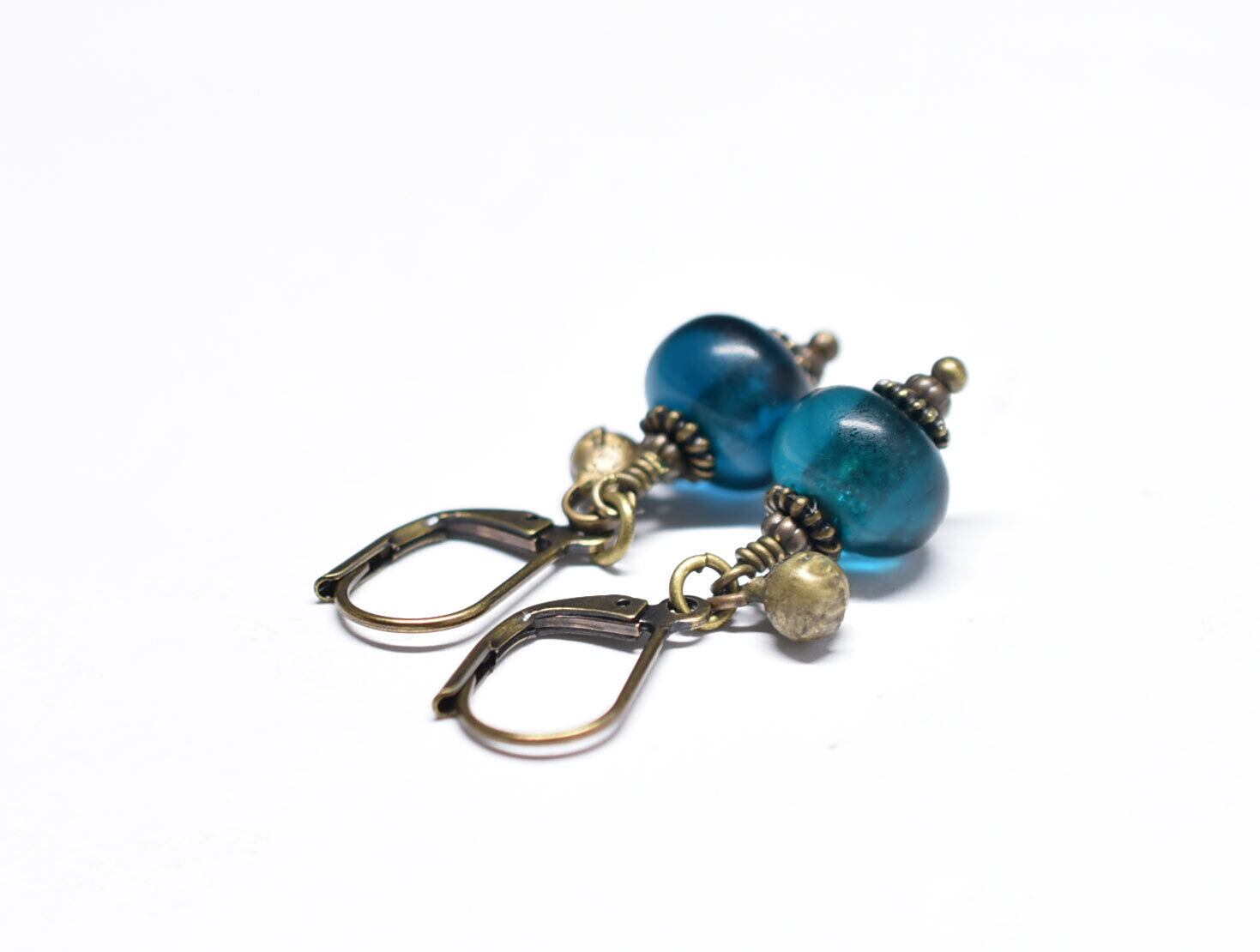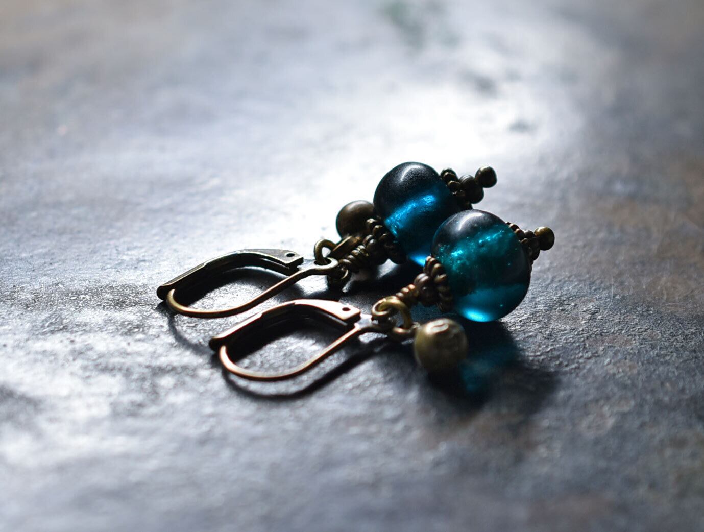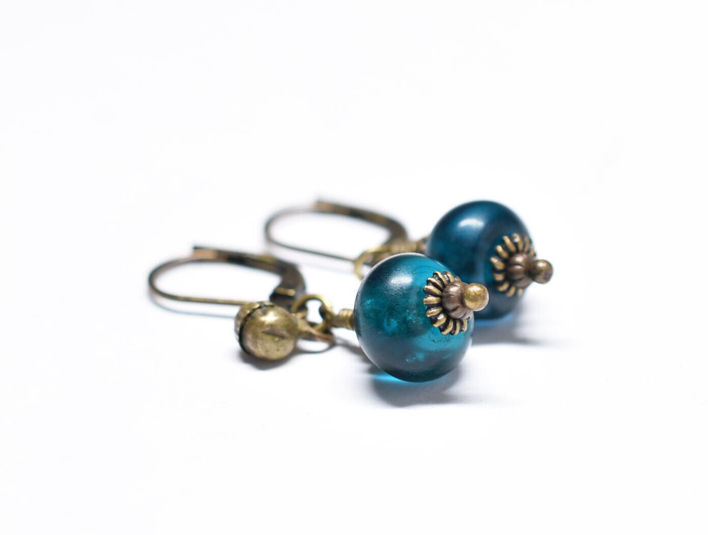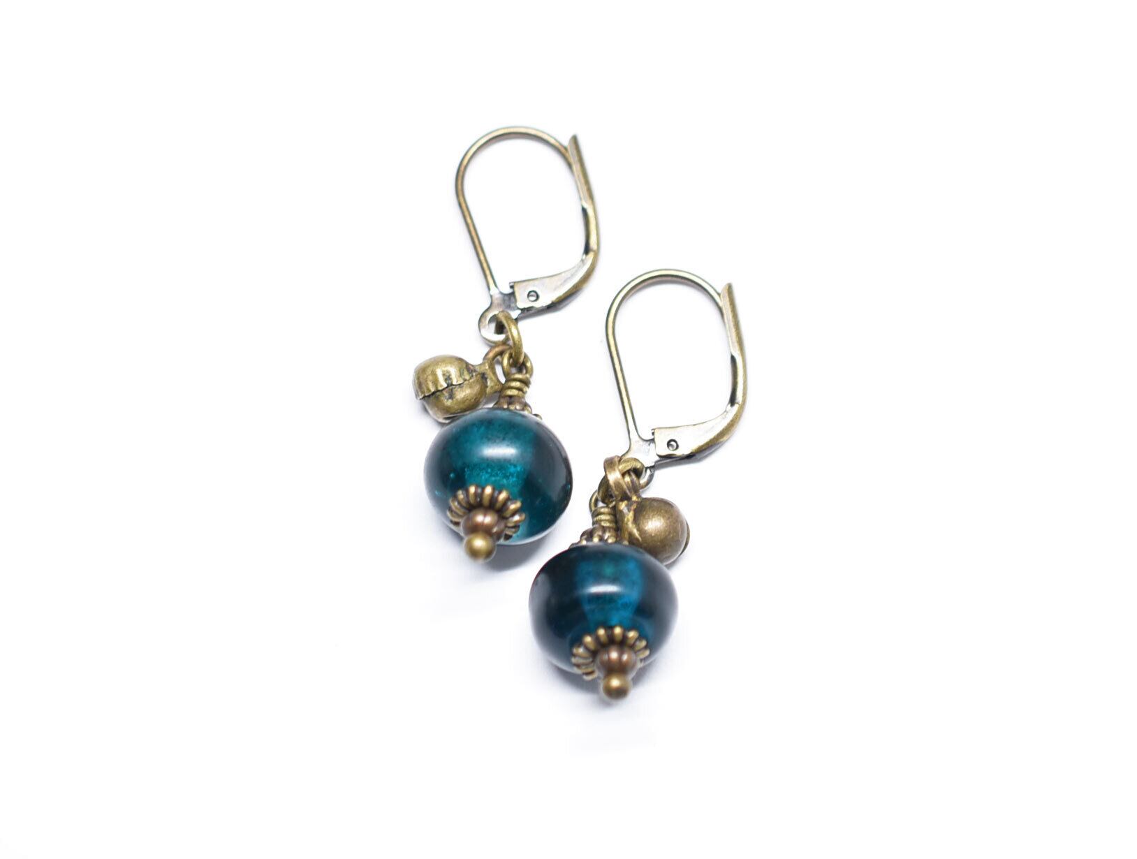 インディゴブルーヴィンテージビーズと民族鈴を繋いだピアスです。