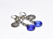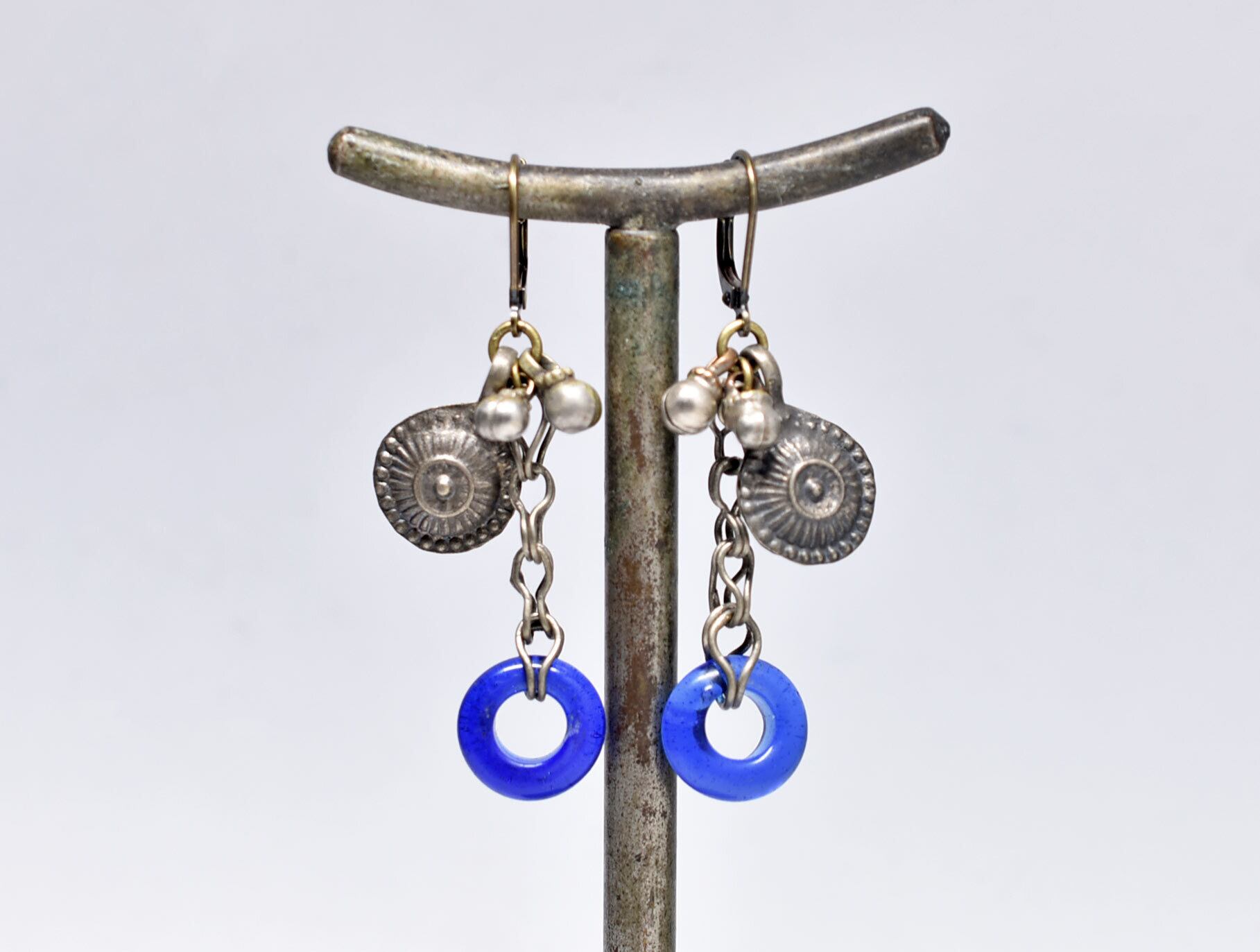 ブルードゴンドーナツと太陽の様なアフガンメタル&チェーン、民族鈴を繋いだピアスです。
