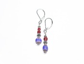 アンティークブルーシェブロンビーズと濃赤ホワイトハーツ、シルバ-ビーズを繋いだアンシメトリーなピアスです。