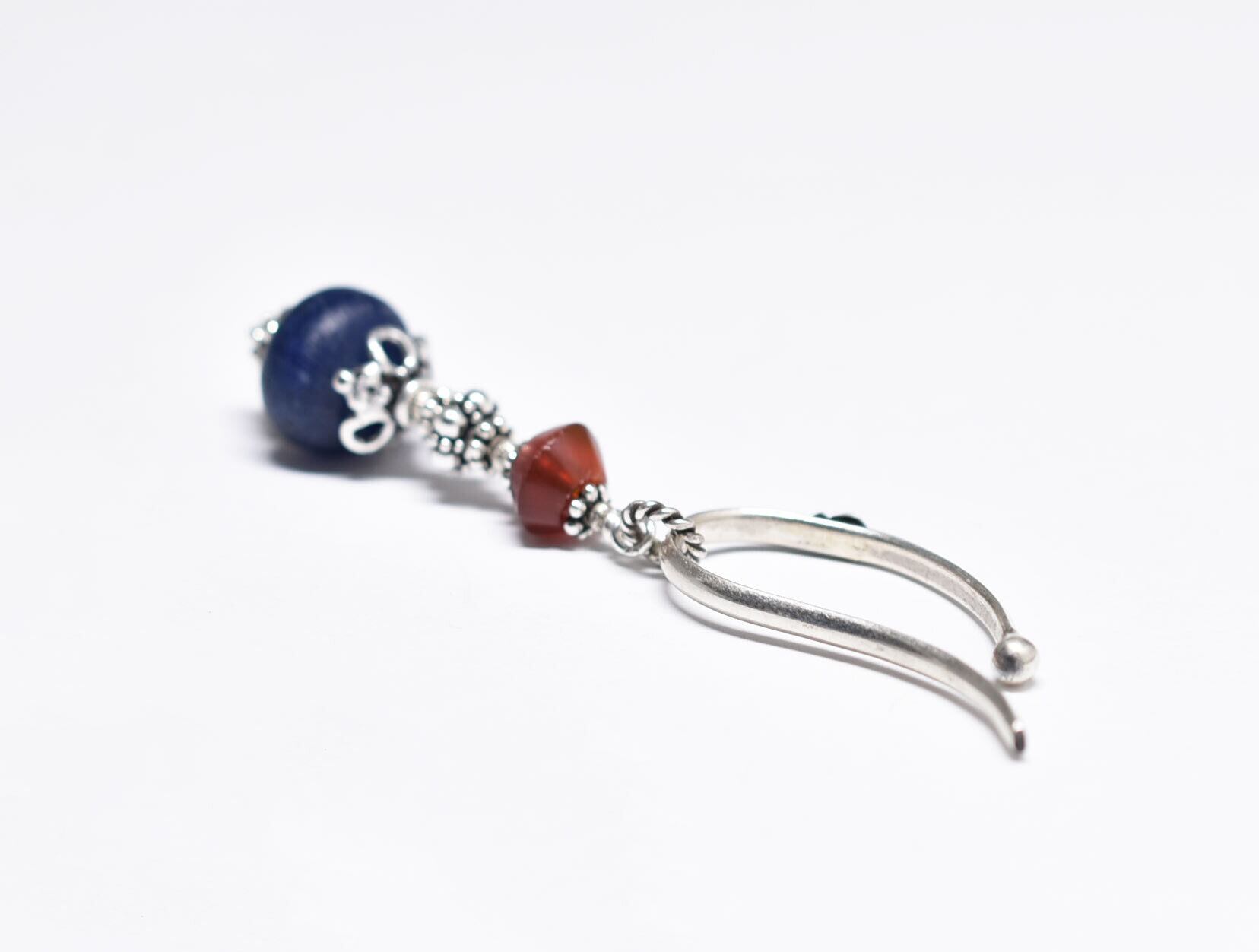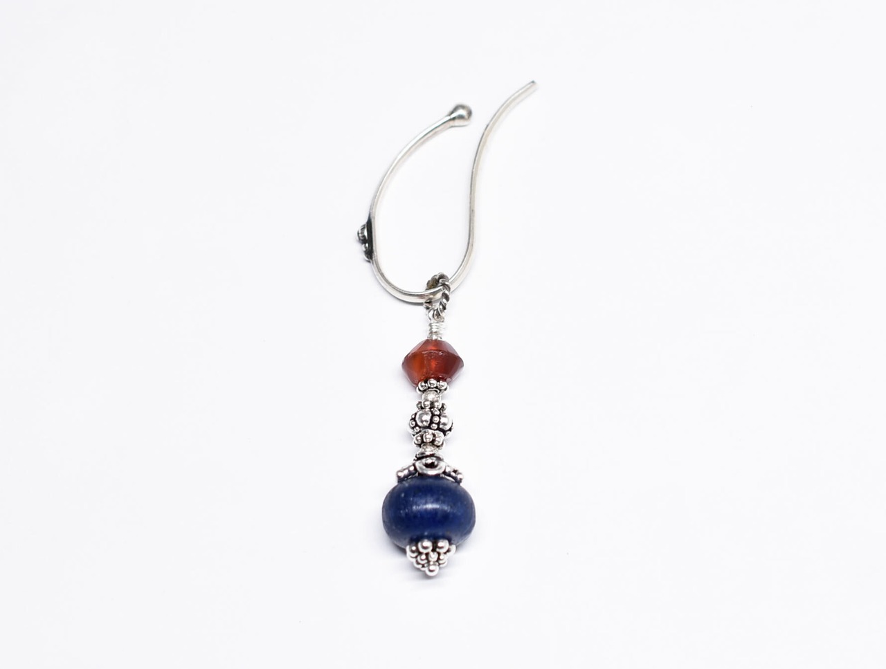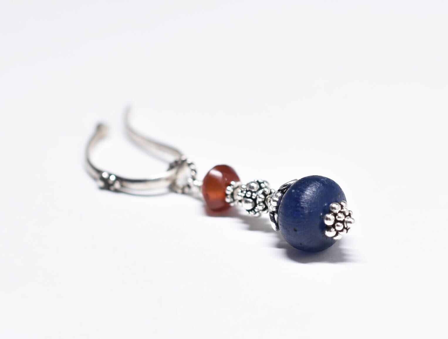 濃紺インドパシフィックビーズ、古代カーネリアン、シルバービーズ、インドシルバーを繋いだイヤーカフインドシルバーイヤーカフです・