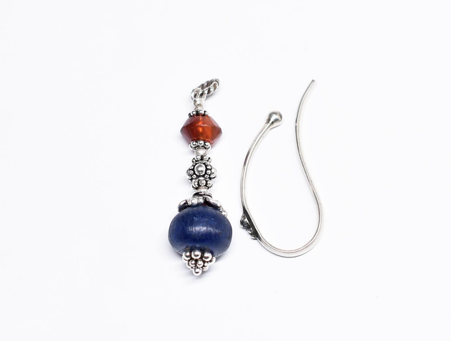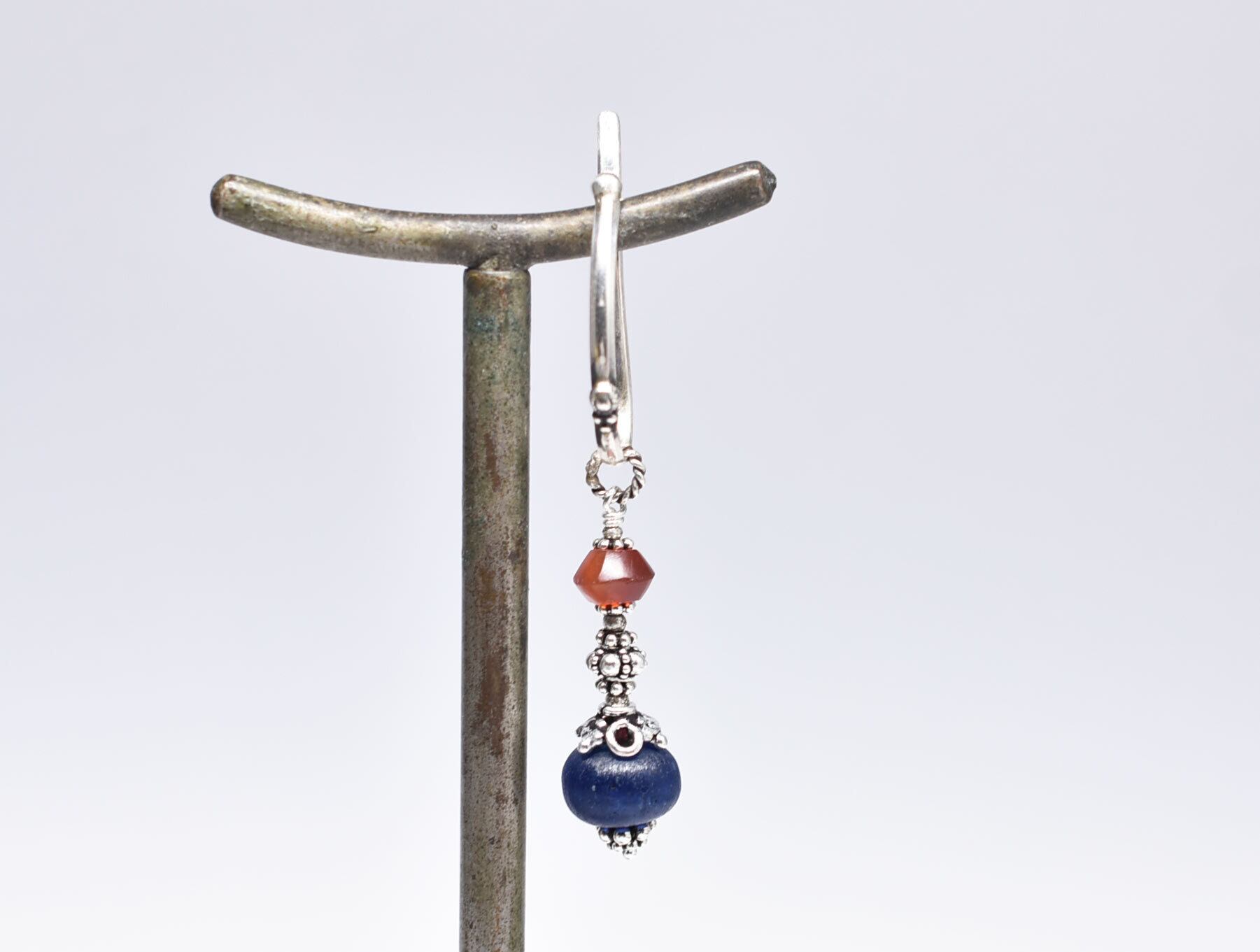 濃紺インドパシフィックビーズ、古代カーネリアン、シルバービーズ、インドシルバーのイヤーカフインドシルバーイヤーカフ